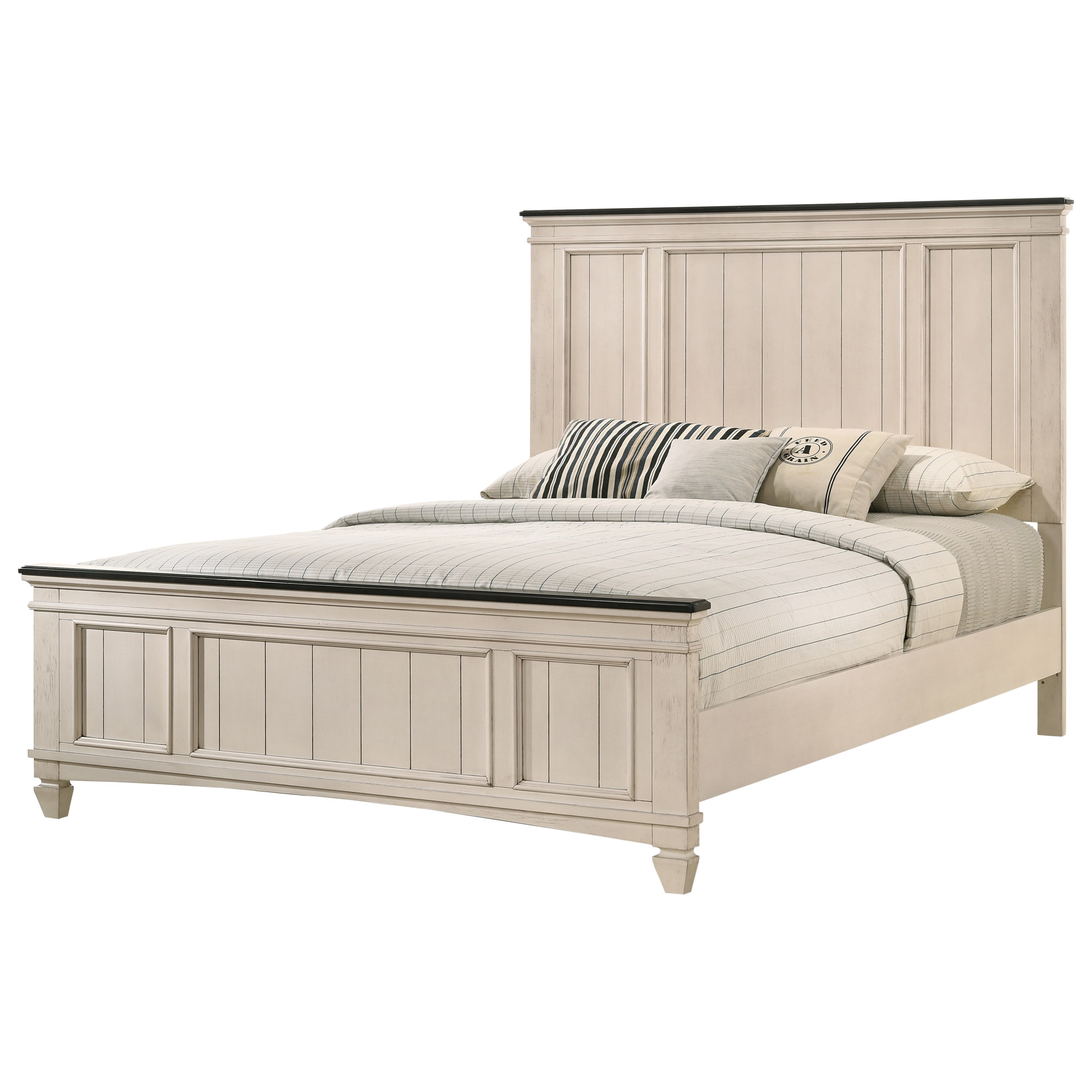 The Sawyer Cottage Style Two-Toned Queen Bed, made by Crown Mark,