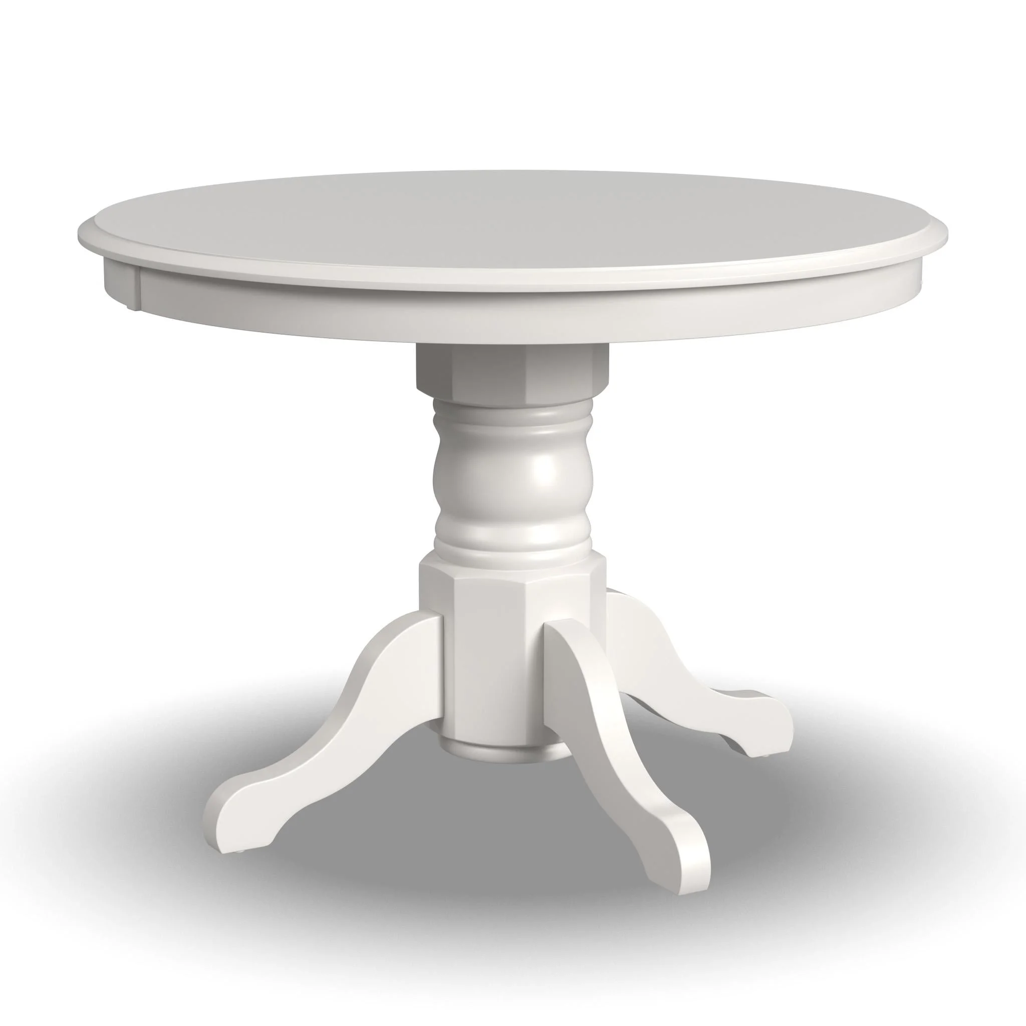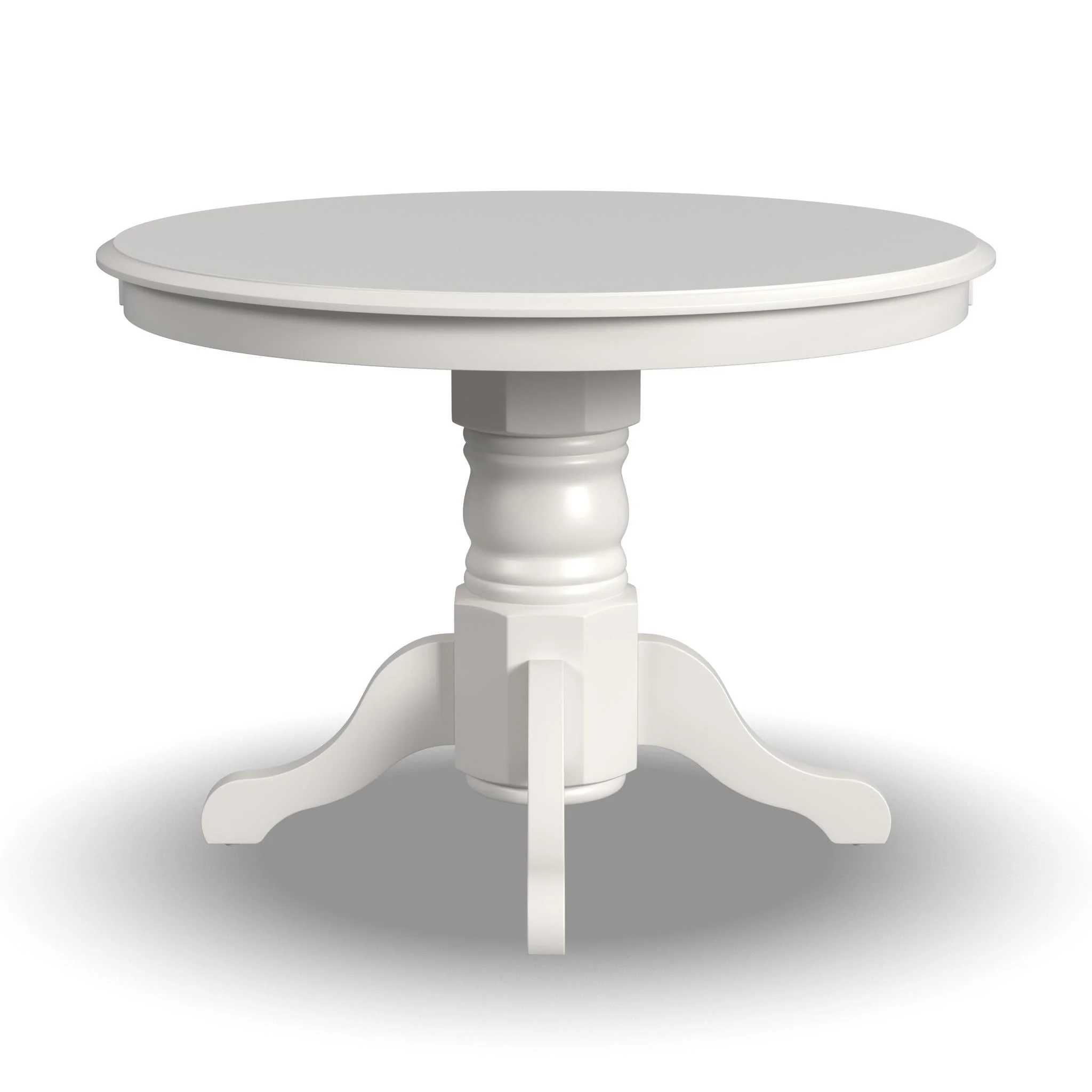 moreThis round pedestal dining table features a solid hardwood construction in antique white finish. Perfect for Sunday brunches with friends or an impromptu project center for your family, this dining table will quickly become a favorite gathering place for meals, games, and other activities. Available as shown or sold as part of a five-piece set, this table can morph to fit your design aesthetic. Whether traditional or contemporary, it is sure to be the go-to gathering spot for family and friends.