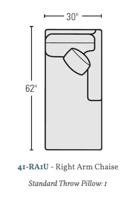 | 41-RA1U | Right Arm Chaise | 1 | 30 | 62 |
