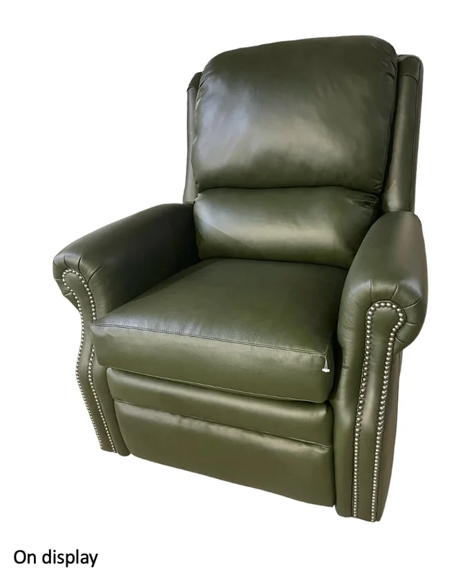 moreRecline in traditional style with this swivel glider manual reclining chair. Rolled arms and nailhead trim offer the traditional appeal this piece has to offer. A plush headrest, seat and back rest and padded rolled arms create a comfortable sit that you'll love to retreat to at the end of the day. Offering the ability to swivel as well as glide and equipped with a manual reclining mechanism for ultimate relaxation, this recliner will make a great addition to your living room, family room or den. This recliner requires 13" of wall clearance.