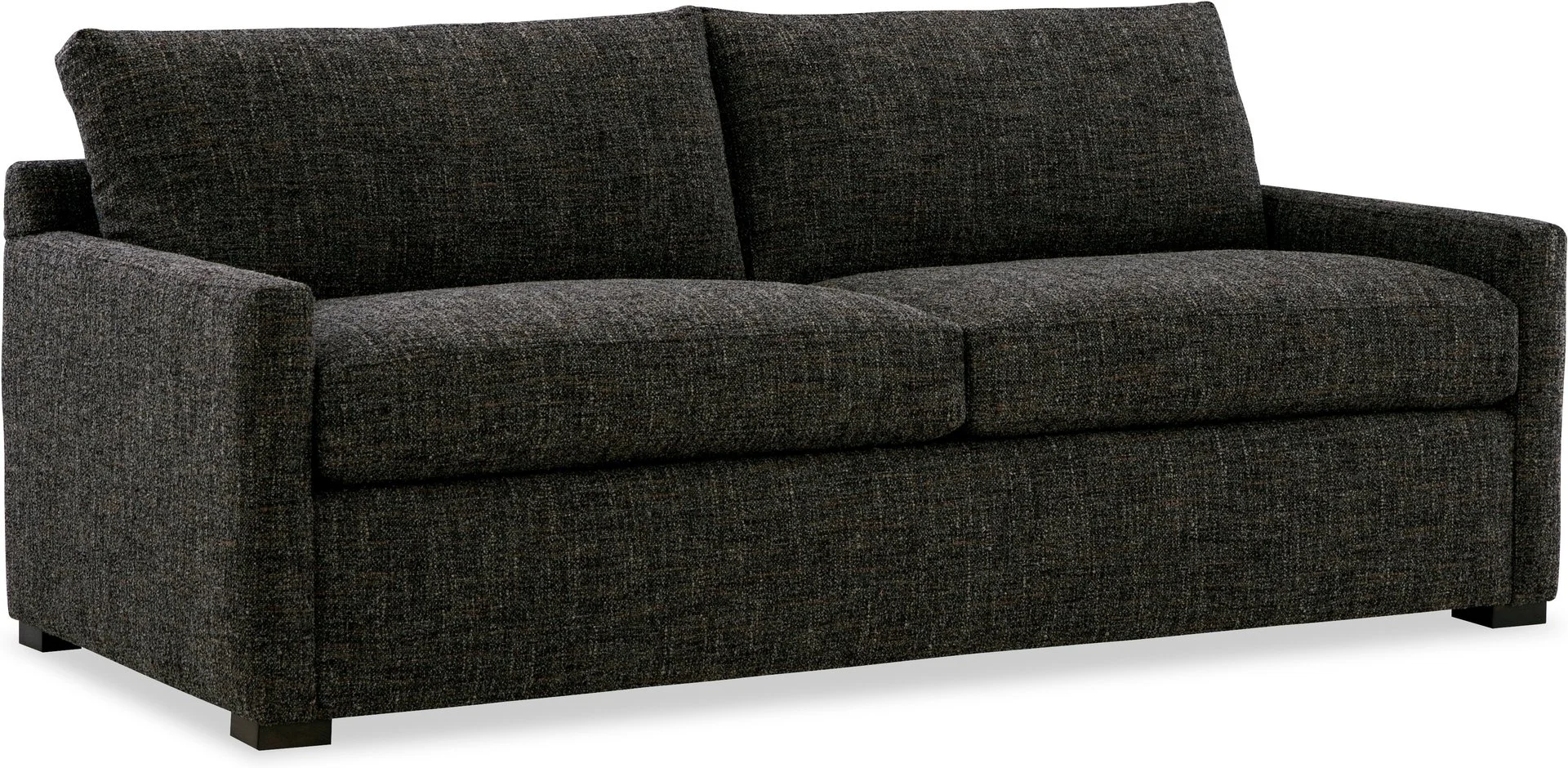The sofa's track arms and block leg base add to its contemporary aesthetic, while the custom upholstery and finish options allow you to personalize the piece to fit your unique style. With hundreds of fabric colors and patterns available, you can choose the perfect look to complement your home's decor.