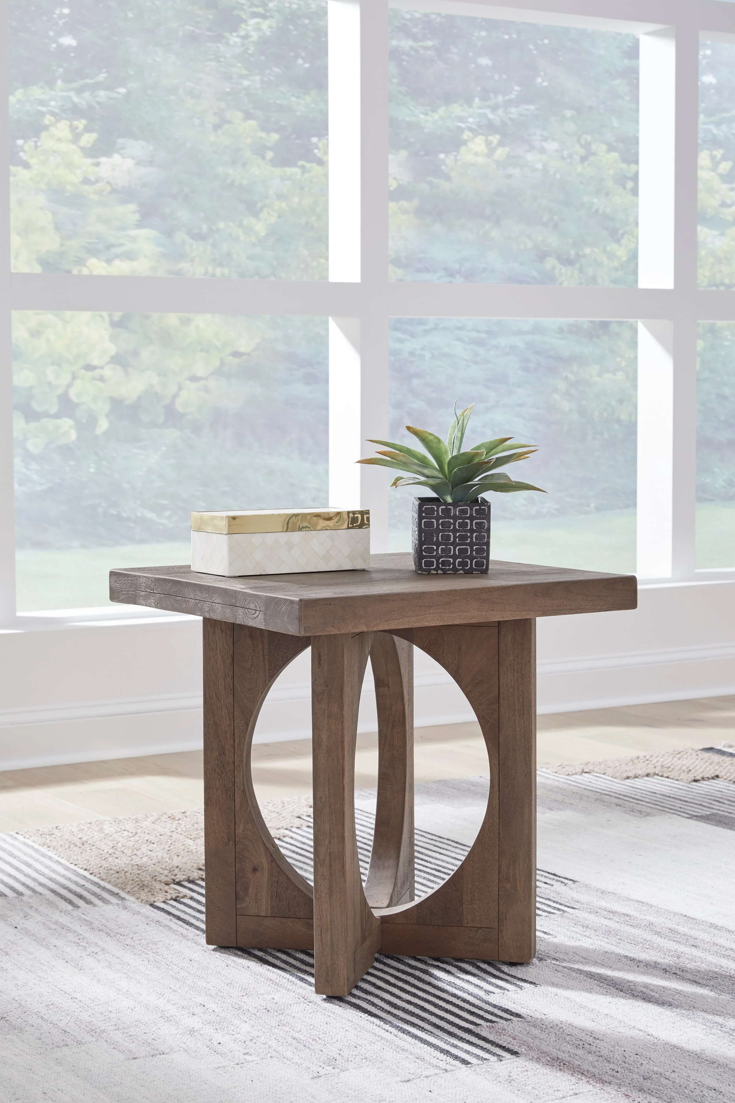 The Abbianna Contemporary Sculptural Wooden Square Top End Table, made by Signature Design by Ashley,