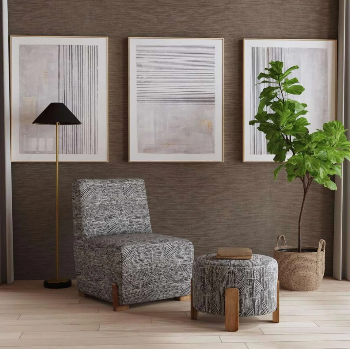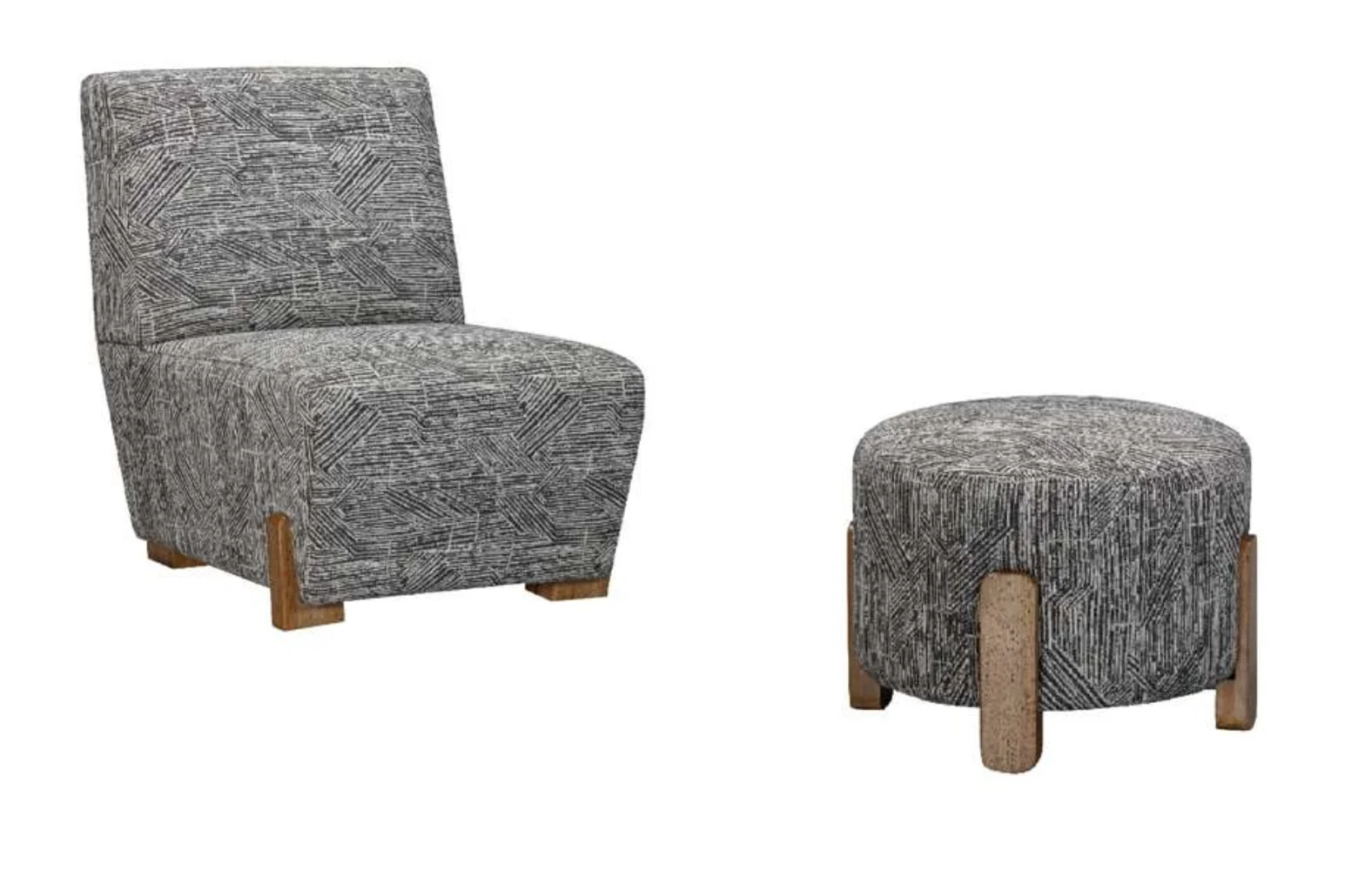 moreThe Jasper accent ottoman features a blend of modern and traditional style influences with multi-functional use as ottoman and stool and featuring an exposed wood base in a natural mango finish with a salt-and-pepper jacquard fabric that is 100% polyester for durability. Finish: natural, salt-and-pepper. Material: solid and manufactured wood frame, deep plush padding..