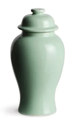 moreIn an unexpected mini size for traditional ginger jars, this is a modern take on a classic. The soft green high gloss glaze creates a more high end feel. Mix in among your patterned pieces in bookshelf or on a credenza for a dynamic look.