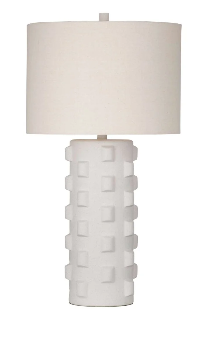 moreThe Mellette Table Lamp stands as an epitome of artistic craftsmanship, meticulously created with ceramic material to evoke a sense of timeless elegance. With a sophisticated matte white finish, this lamp exudes a pristine and modern aesthetic, contributing to a refined atmosphere in any interior space. The inclusion of a white drum shade enhances the lamp's overall visual appeal, adding a harmonious touch to its design. The careful selection of materials and design elements makes the Mellette Table Lamp a distinguished addition to home decor, seamlessly blending classic and contemporary styles. The white drum shade complements the matte white finish, casting a soft and welcoming glow that enhances the ambiance of any room. With meticulous attention to detail and a thoughtful approach to design, this lamp serves as a symbol of seamless integration, offering both functional illumination and an aesthetically pleasing accent to elevate the overall decor.