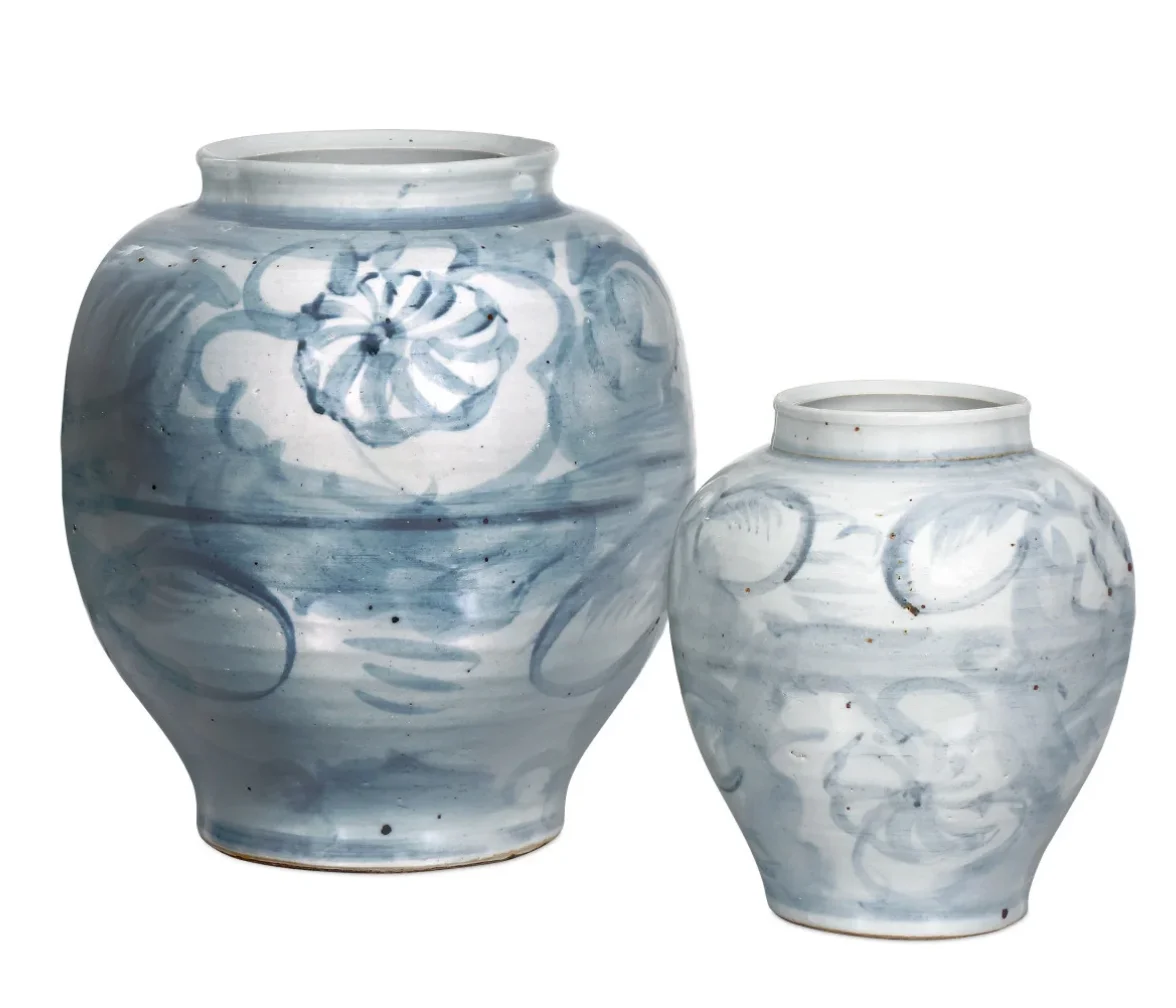 moreModern interpretations of the tradition of Chinoiserie that dates back to the great dynasties in Asia, the Ming-Style Countryside Large Preserve Pot is made of porcelain. The design tells its "story" in pale blue motifs on an off-white ground. Because these are artisanal pieces handmade by families with generations of expertise, the color and pattern may vary slightly.