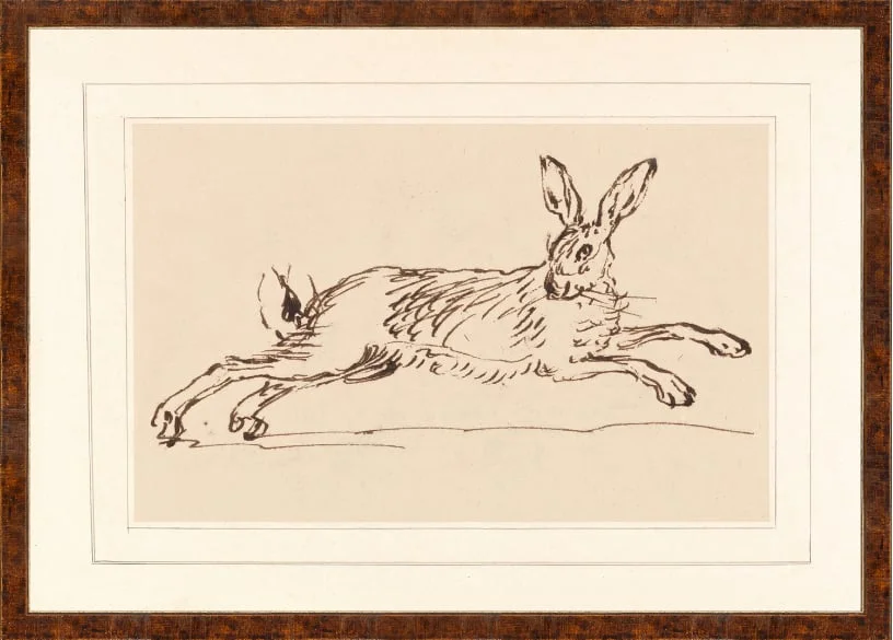 moreVintage illustration of a hare in mid stride. Finished in a wood frame with a tortoise shell coloured veneer.