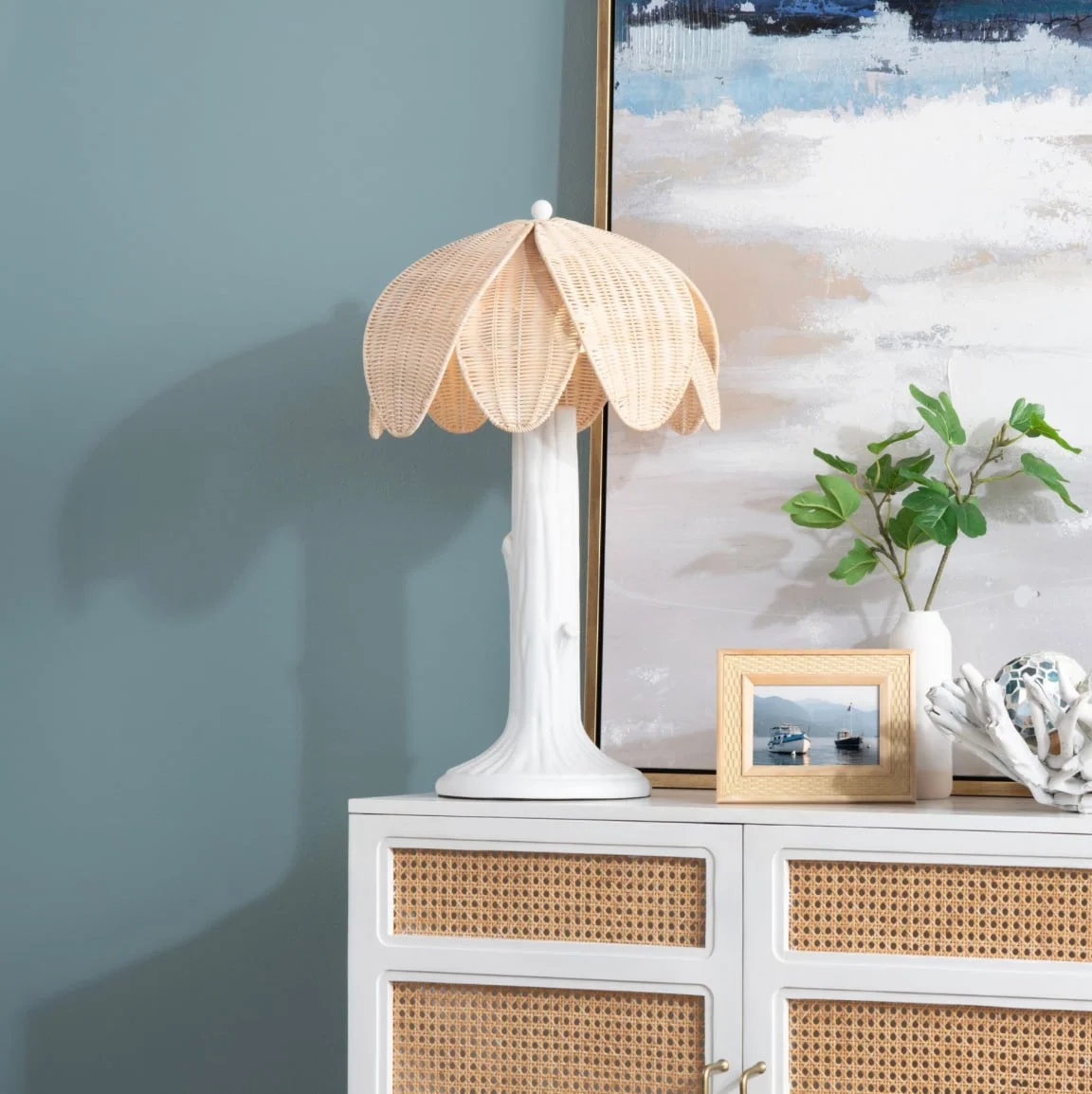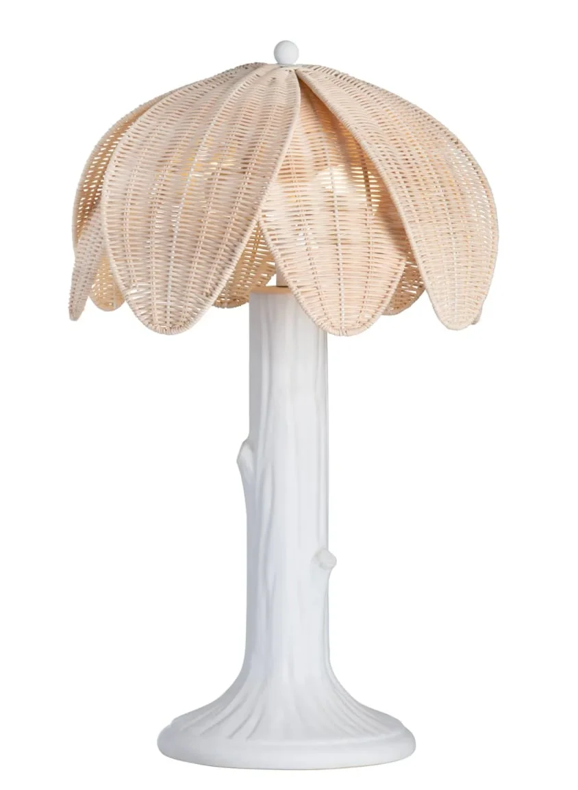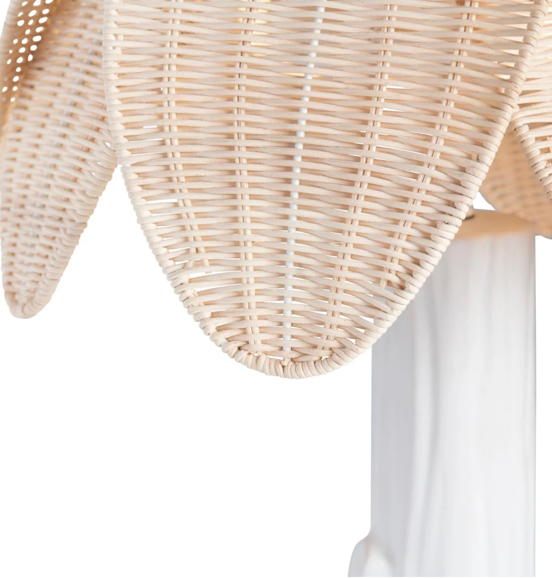 moreIn a whimsical and organic design, the Crestview Collection Willa Table Lamp features a leaf-shaped shade made from handwoven wicker. Its base is made of ceramic in a white matte glaze. This lamp is sure to be a conversation starter in both coastal and traditional interiors. It would also be perfect for a nursery or child's room.