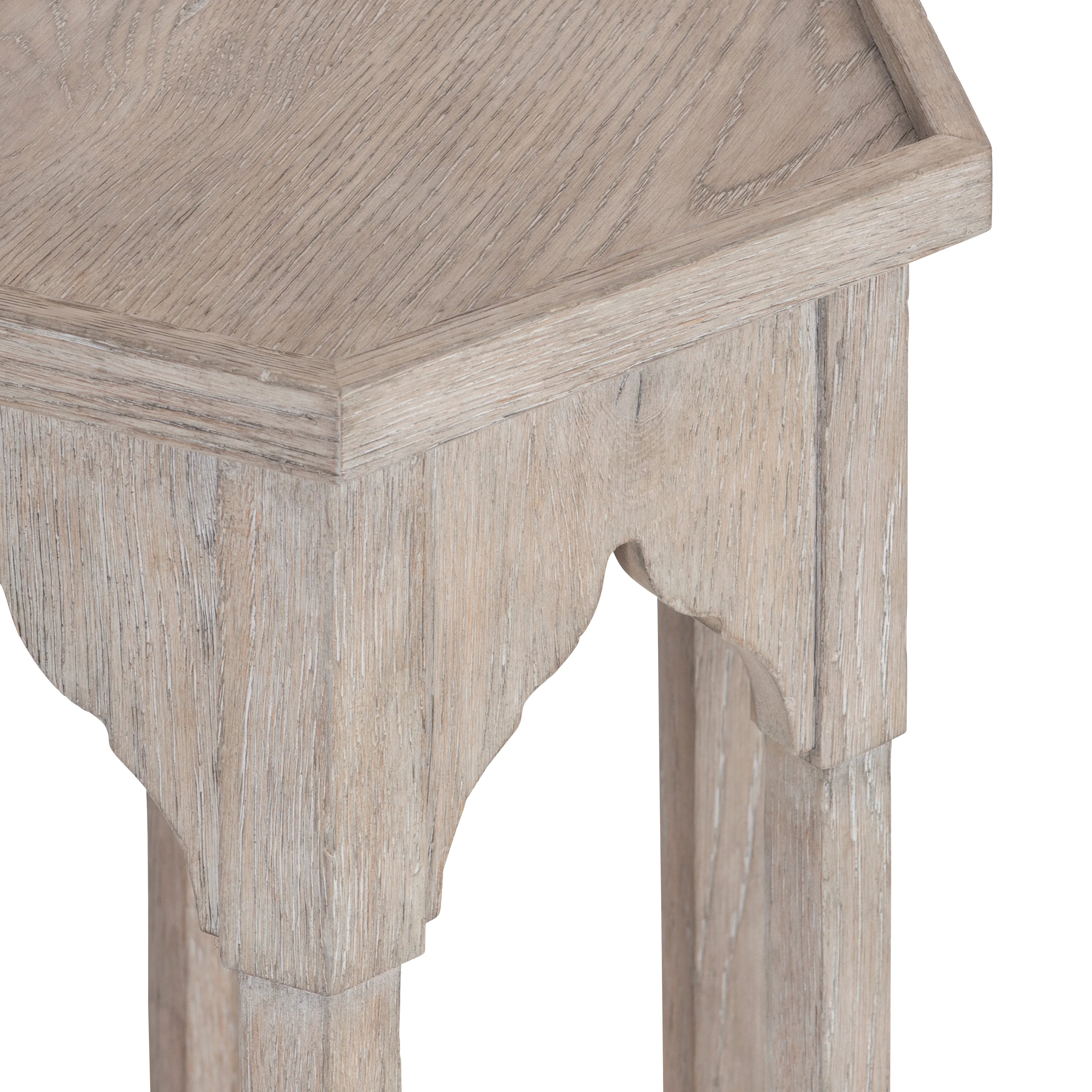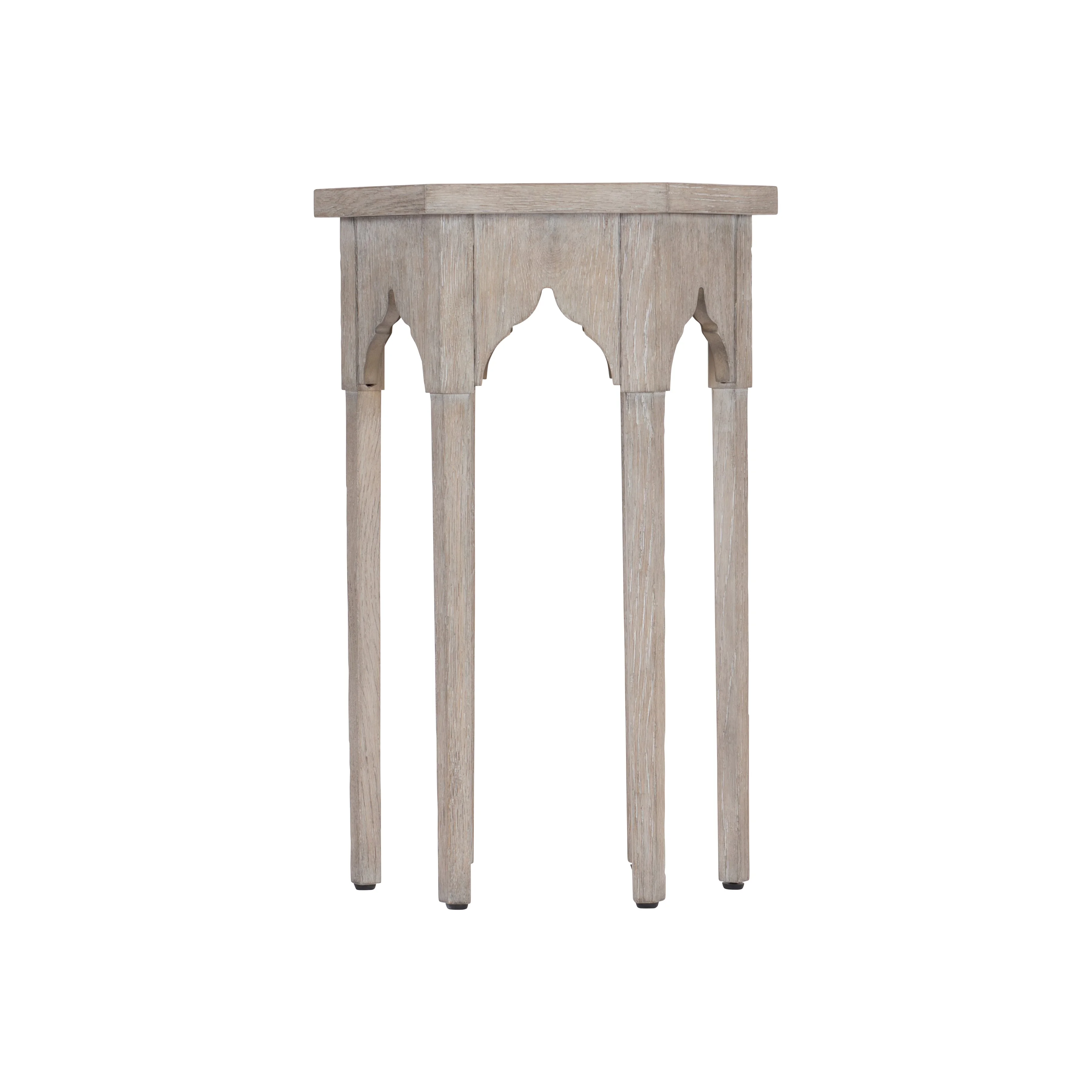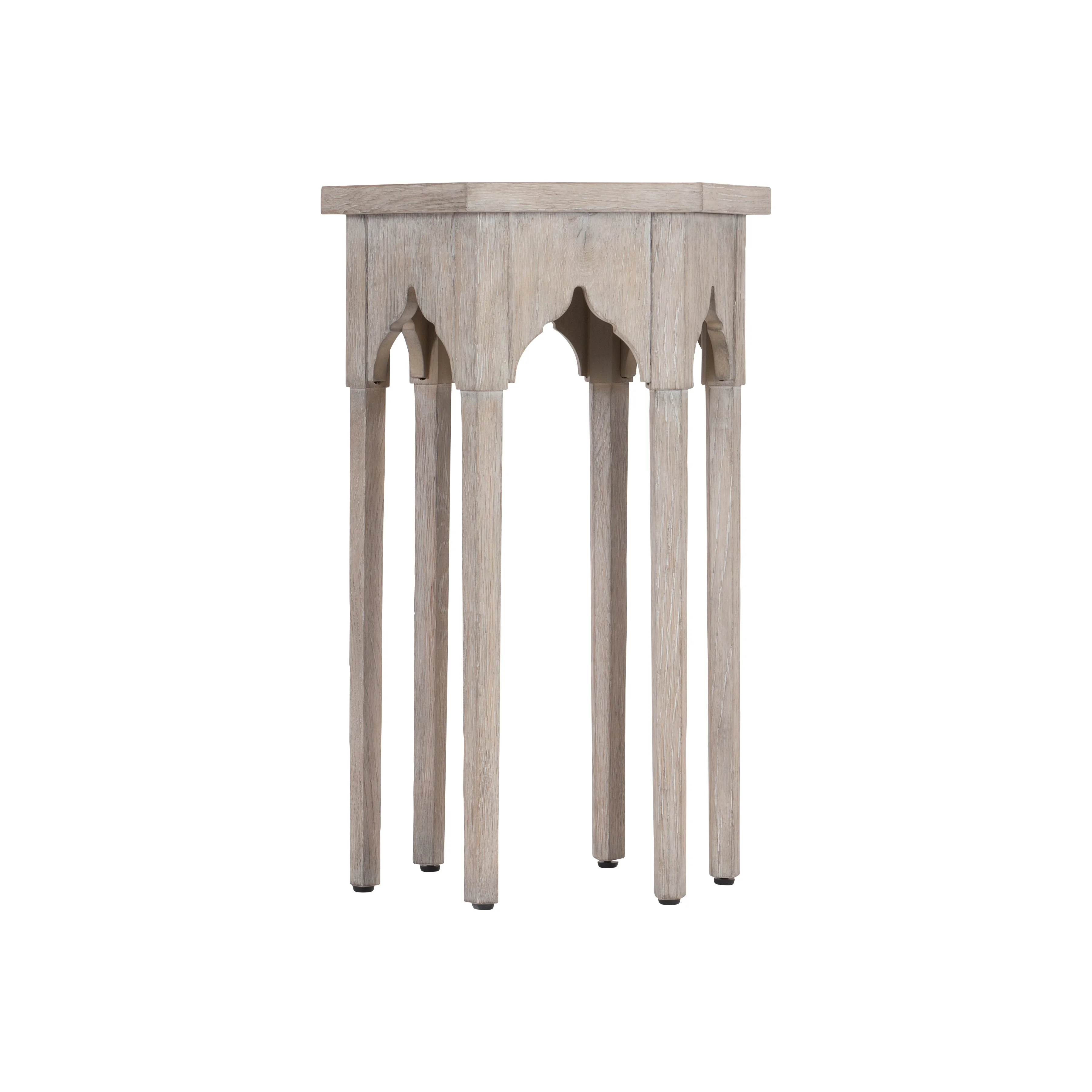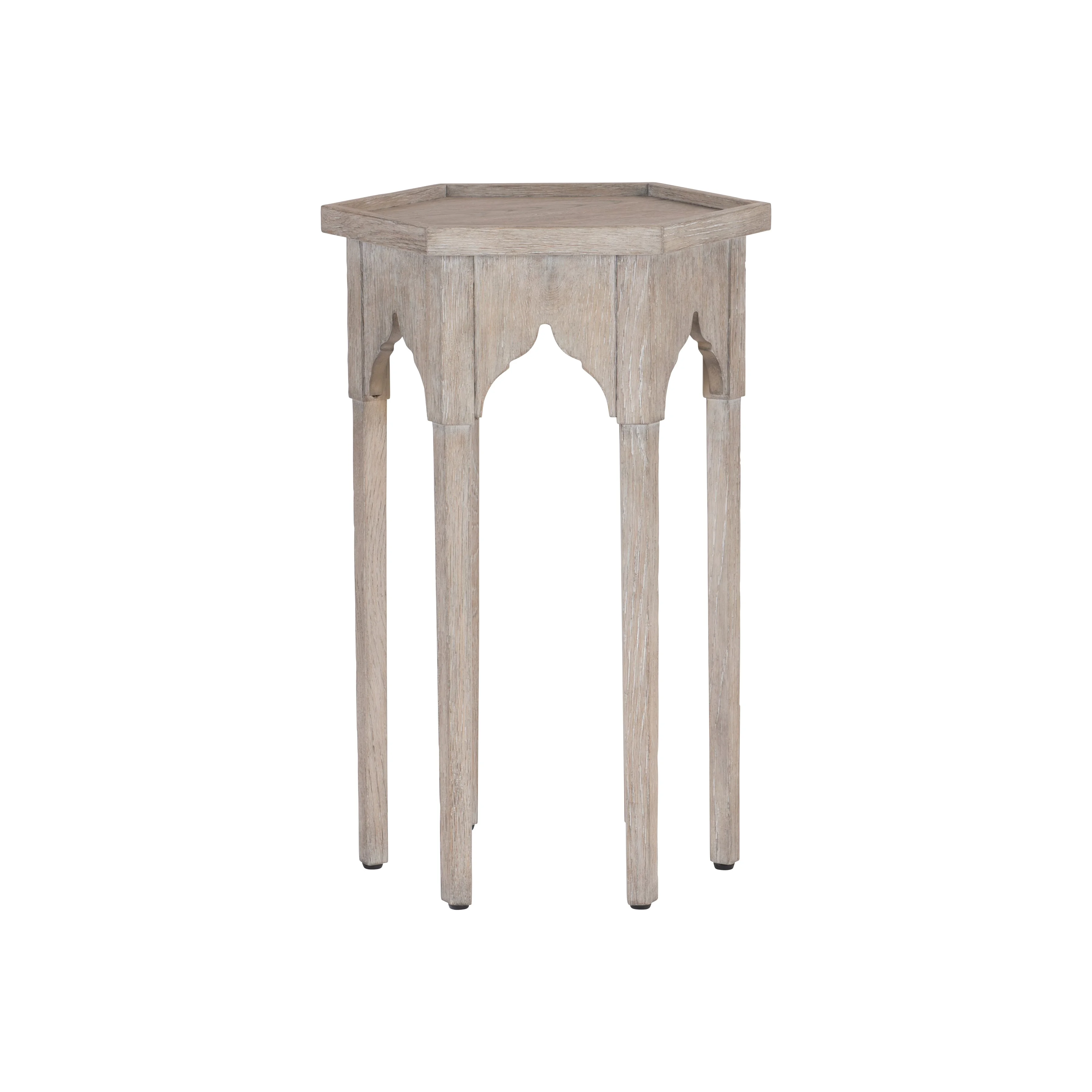 moreA weathered finish offers the look of history and timeless style, while distinctive shaping at the table's edge gives the Albion accent table its own unique refinement. A six-sided gallery top and sleek legs set a tone of classic design. While a tactile wood grain and softer feel ensure that this compelling design draws all eyes.