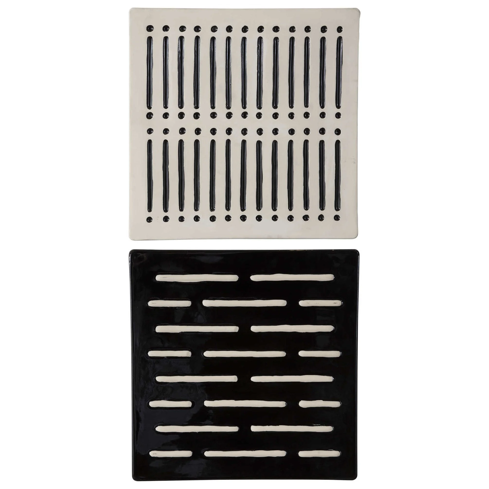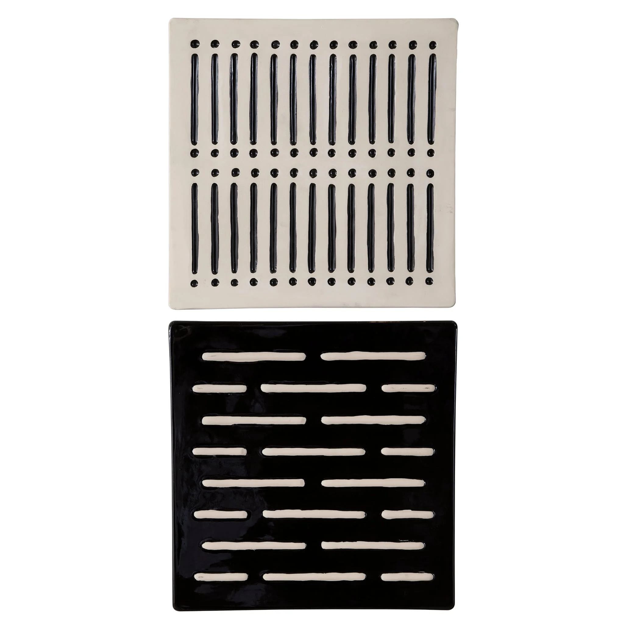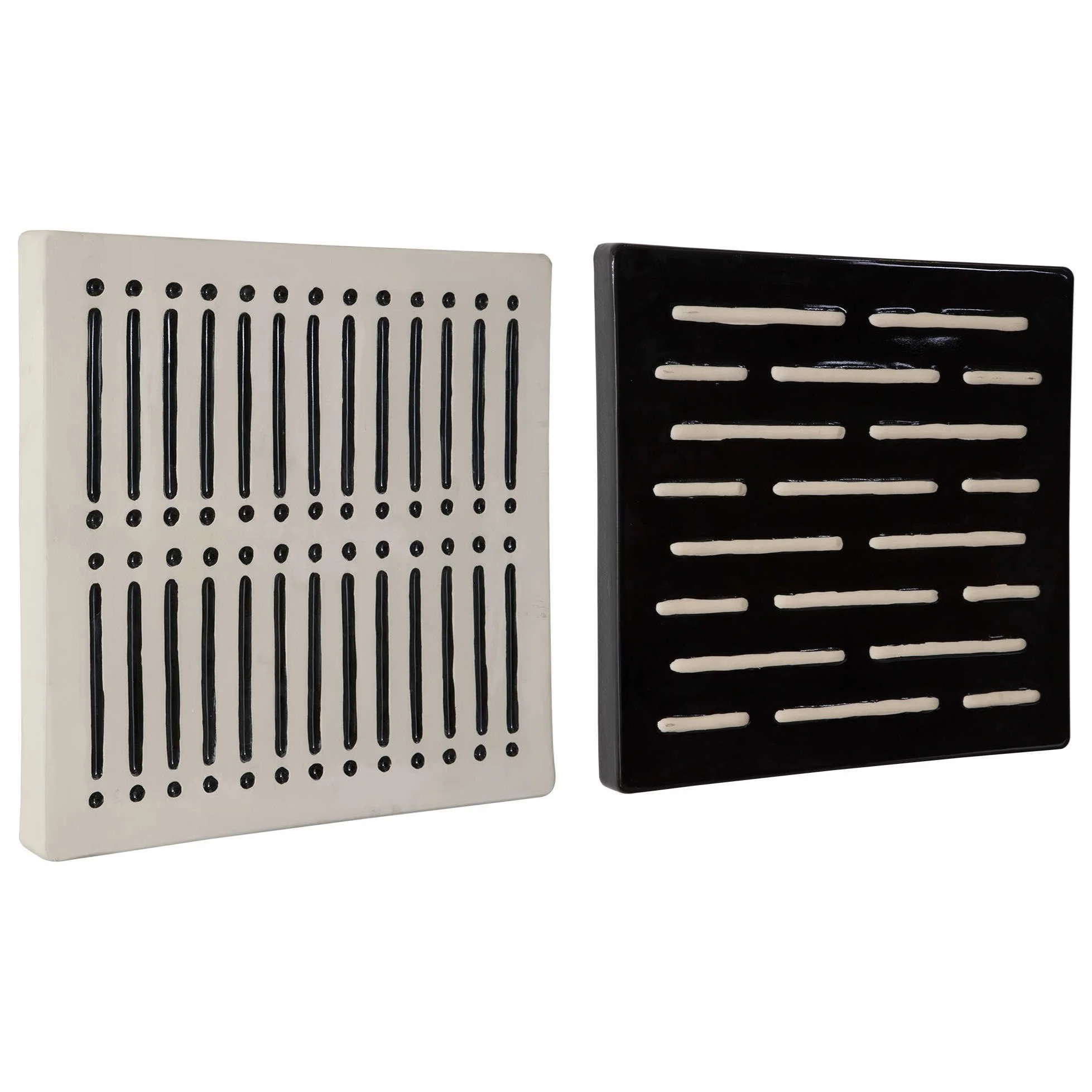 Update your space with these modern earthenware wall squares. Each are glazed in an inverse matte ivory and gloss black palette with noticeable Scandinavian style influence. Each panel may be hung horizontal or vertical, allowing multiple wall design options.