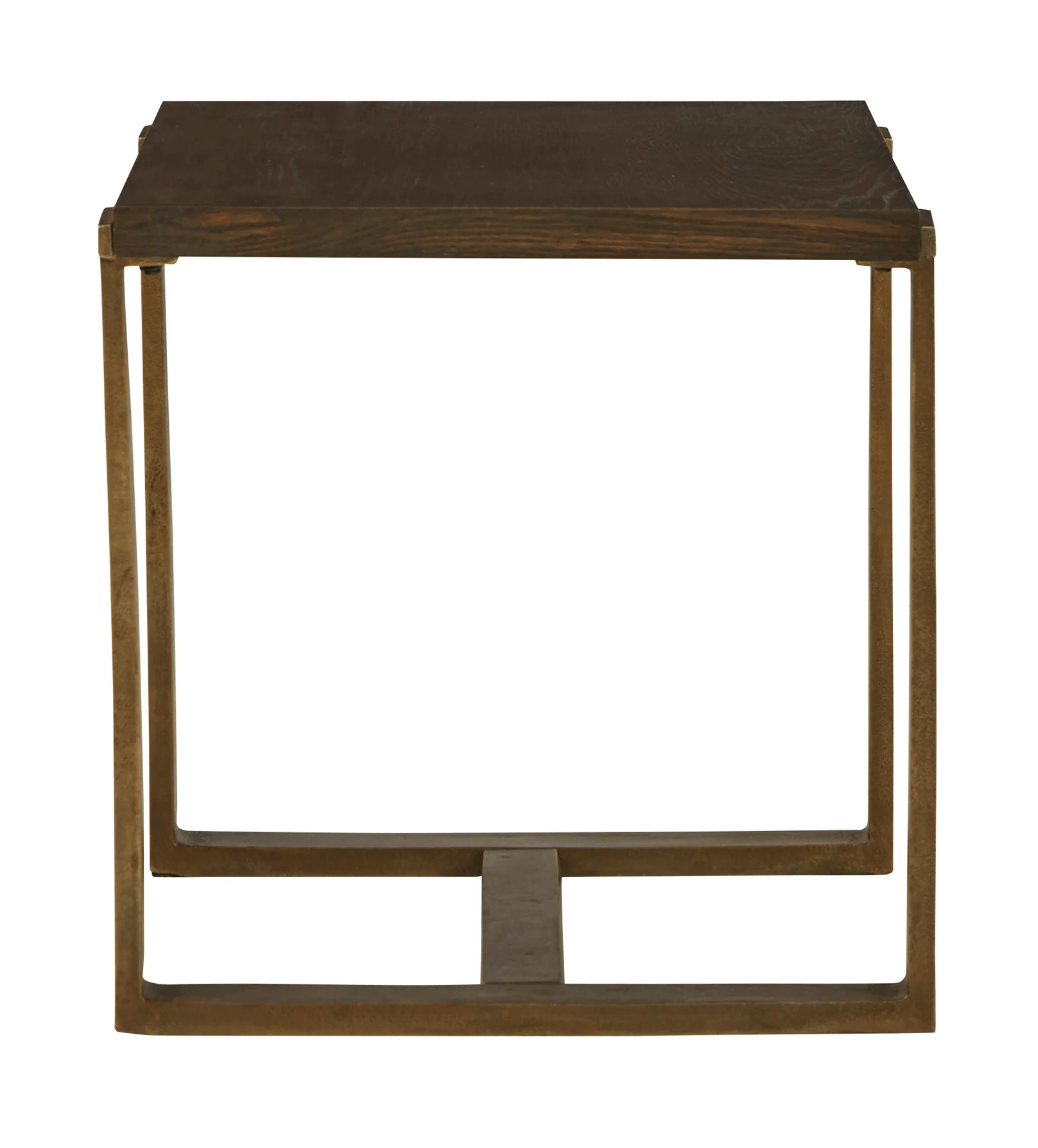 moreChic and sleek, this end table satisfies your taste for contemporary design. Its warm brown top is neutral and refined, while an antiqued goldtone base adds textural character. Place it next to your sofa or sectional to transform your living room into a curated modern masterpiece.