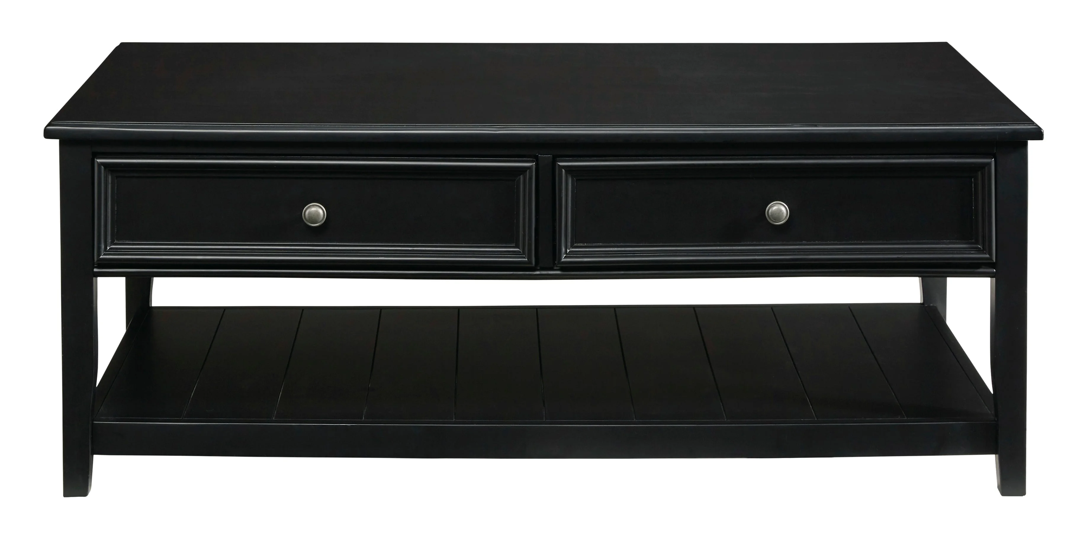 Black Coffee Table with 2 Drawers and 1 Shelf