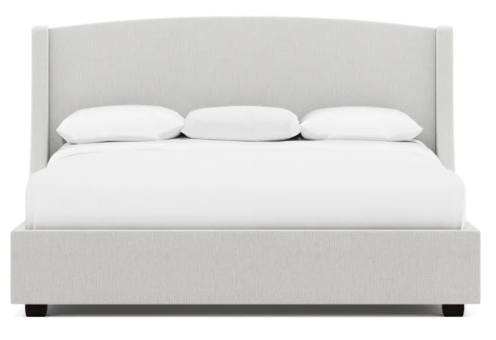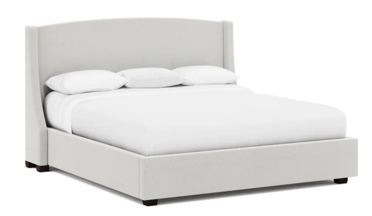 Fully upholstered wing headboard with optional nailhead trim across top rail and outside of wings
