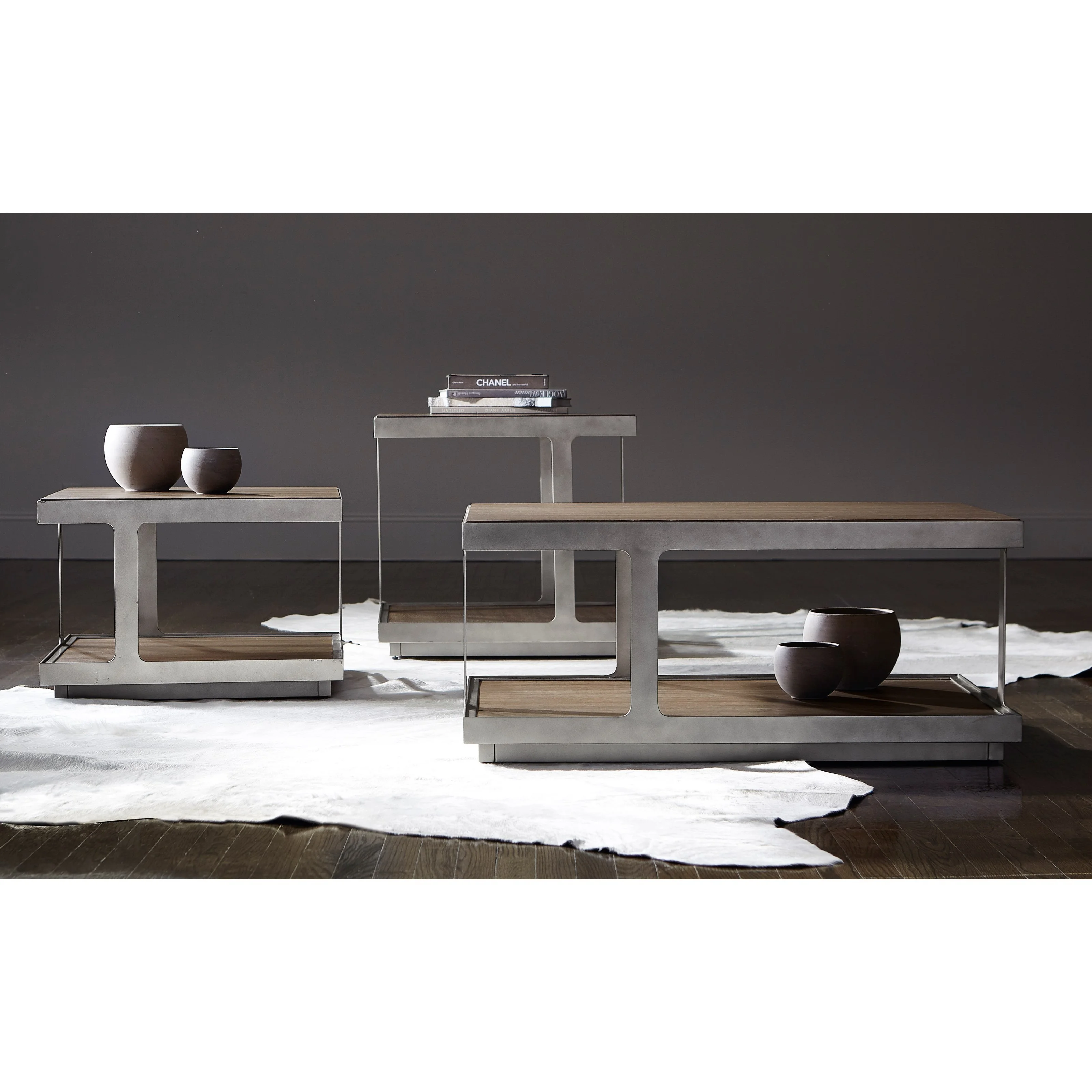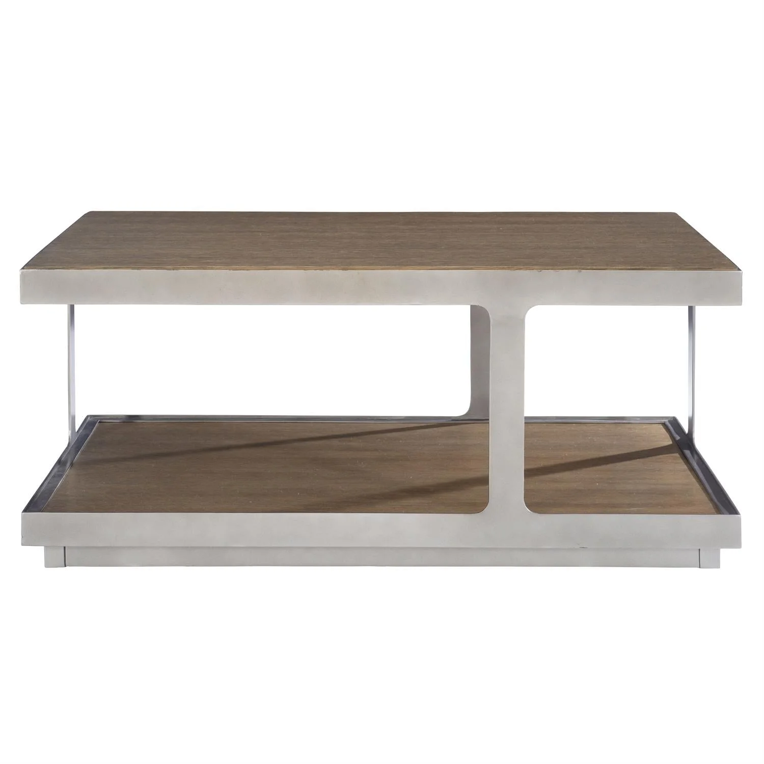 moreRevealing mid-century influences, the Belvedere cocktail table combines metal and wood in a clean, asymmetrical design. Quartered oak veneers in portobello finish bring a warm tone, while a steel frame finished in antique pewter contributes a sophisticated cool. A modern industrial look for the luxe living space.