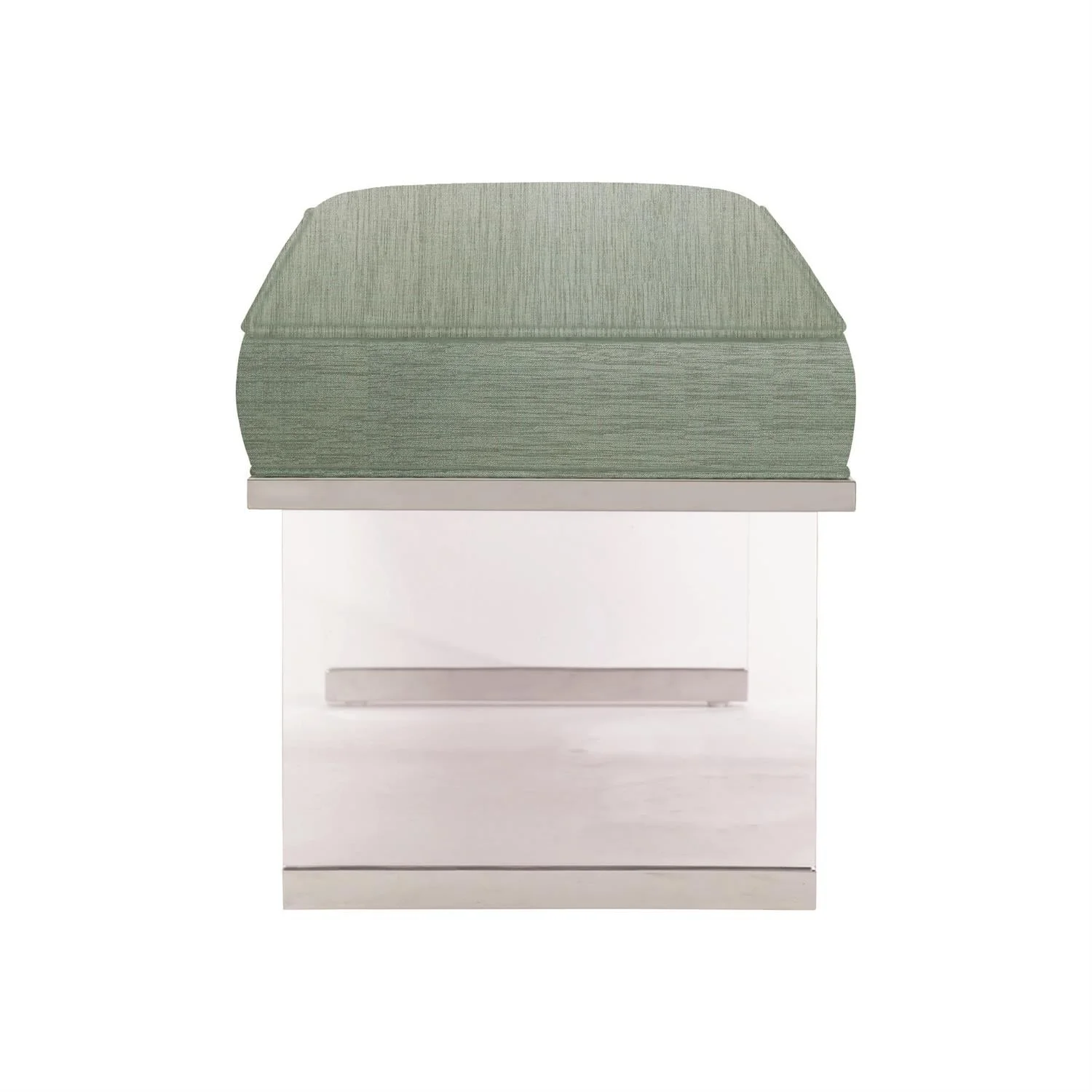 moreFine craftsmanship, unique materials, and modern styling characterize the eclectic Bernhardt Interiors collection. The sleek and elegant Laguna bench rests a plush upholstered bench seat on a clean, modern base crafted from acrylic. The clear acrylic creates a minimalist look that allows for unobstructed views of wall treatments, rugs, and flooring. Stainless steel accents add a touch of shine.