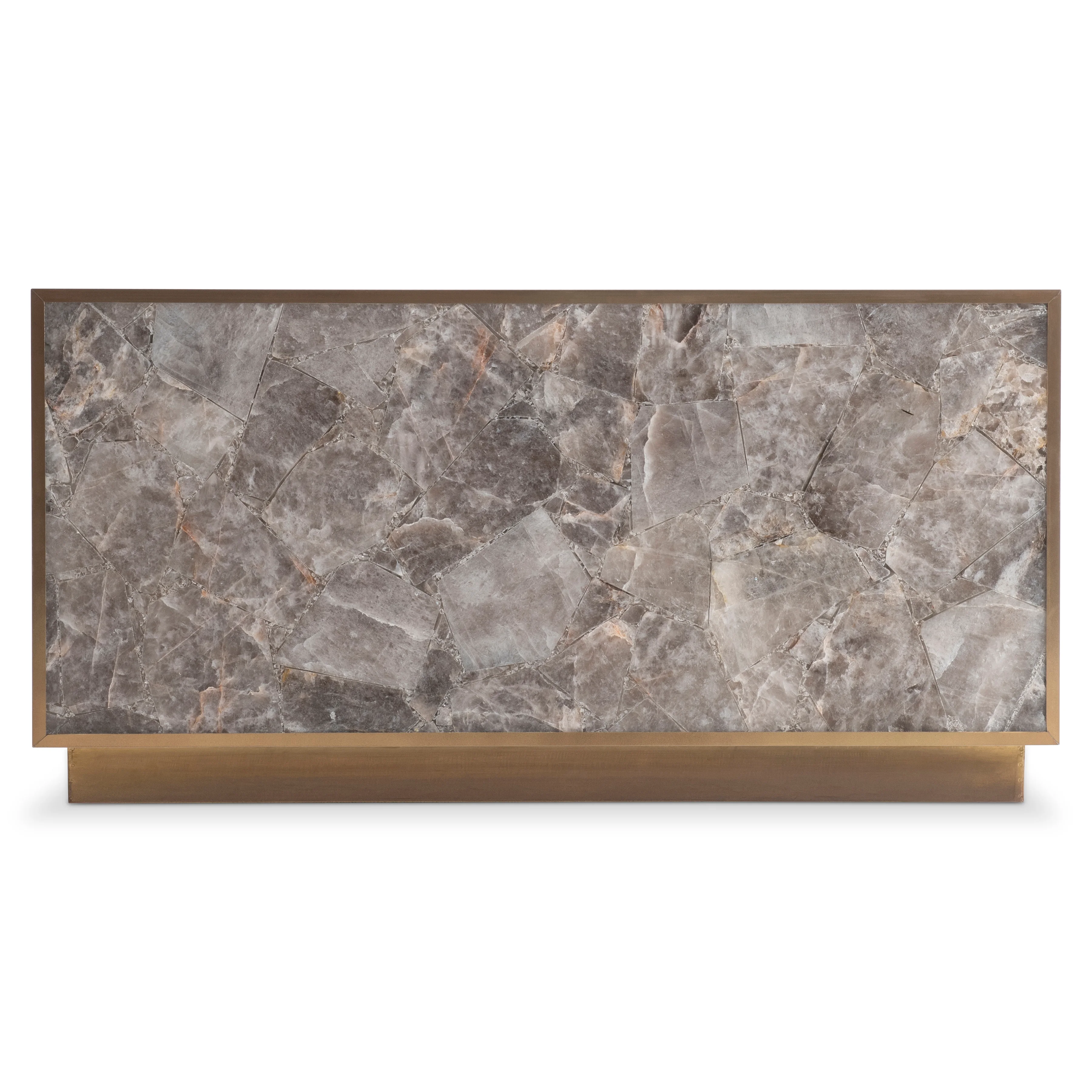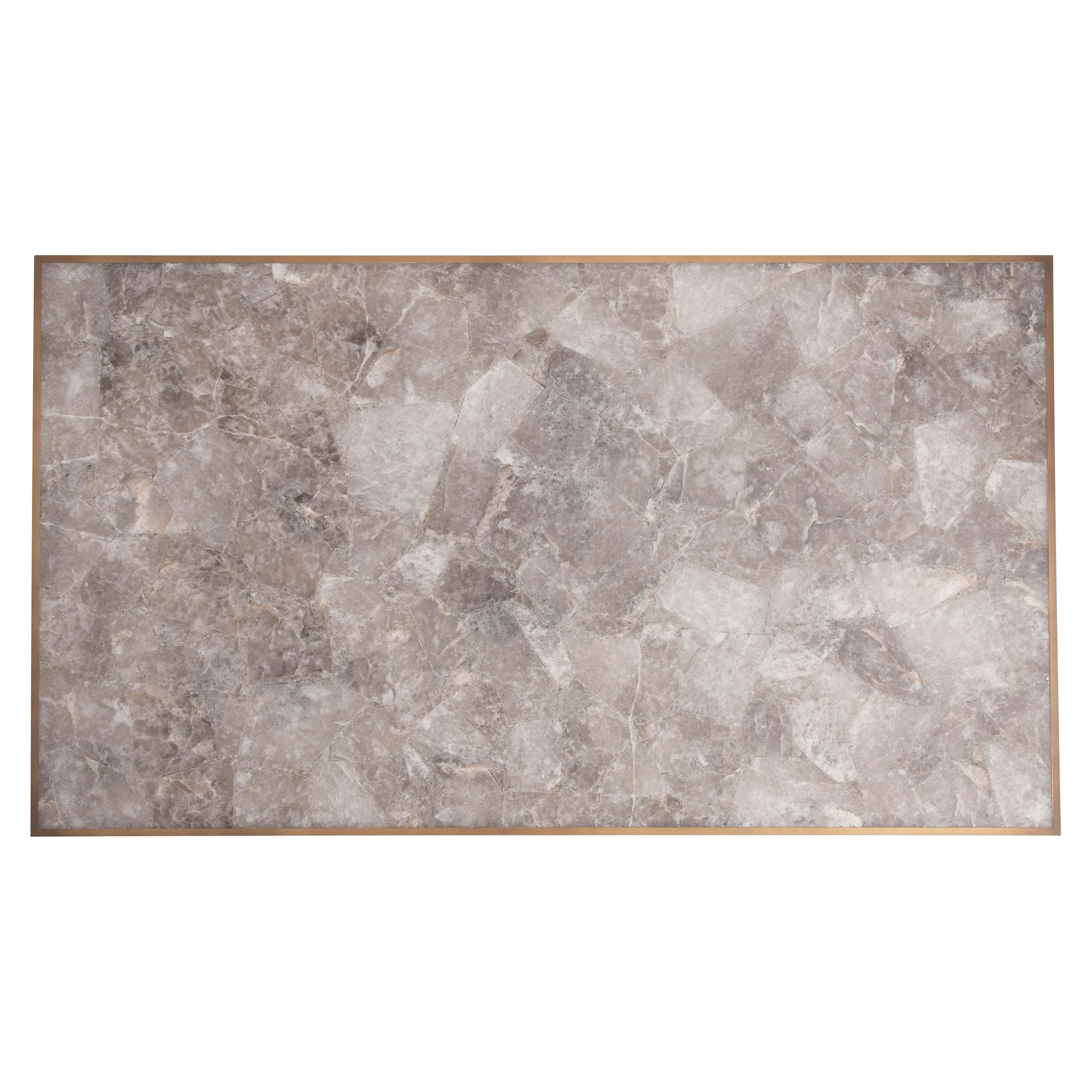 moreNatural panels of stone are encased in sleek metal on the Tildon cocktail table, defining an organic look that’s elevated and distinctive. Smoky quartz is framed by stunning brass, with the bold rectangular form resting on a plinth base. The glam factor is increased with our gorgeous Aged Brass finish on the metal.