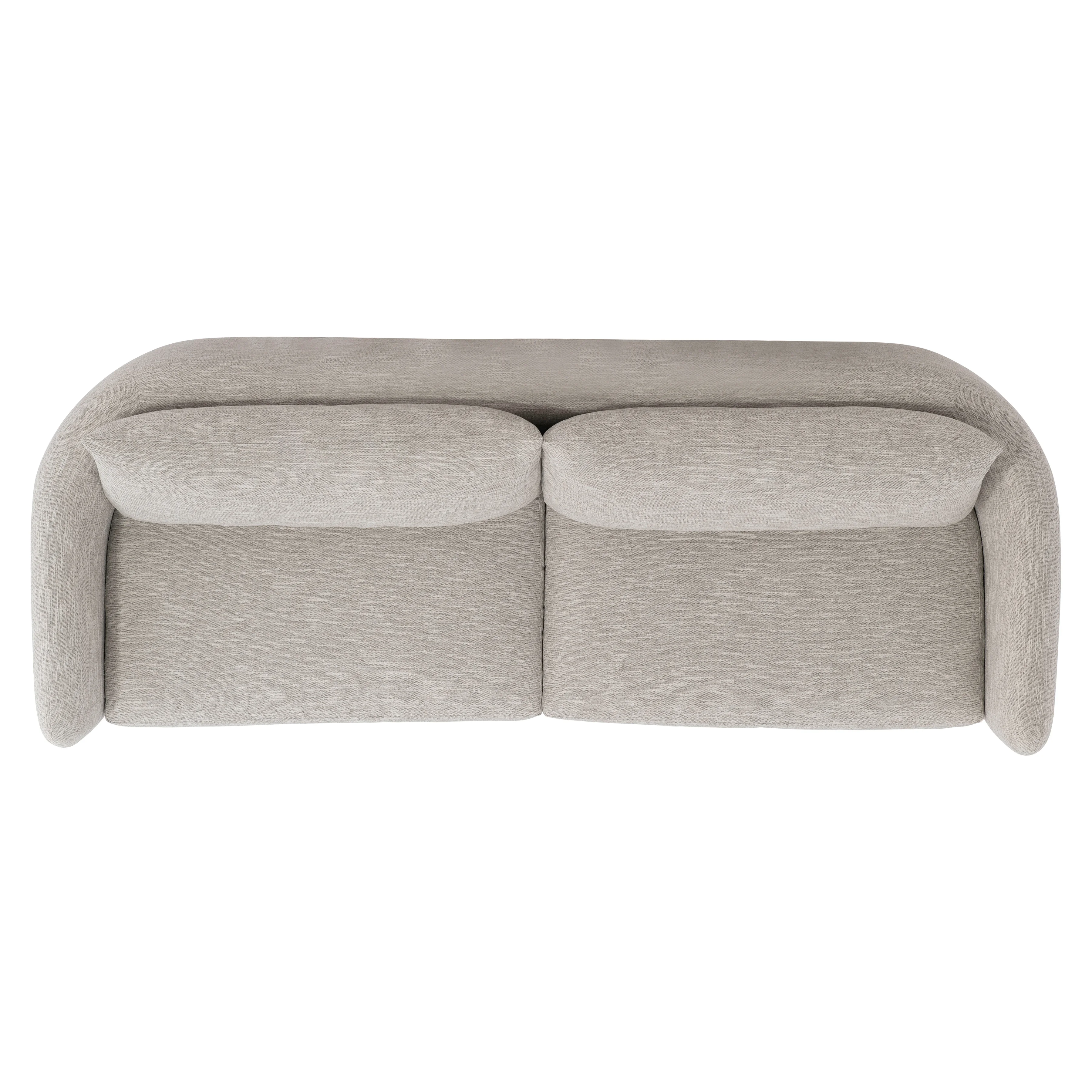 moreThe Rowan sofa has a sculptural style with geometric details cut into the base to form upholstered feet. The padded sides and back add a softness to the form and a unique stitch detail makes a tailored statement. Deep seat cushions and loose back pillows complete the comfortable design.