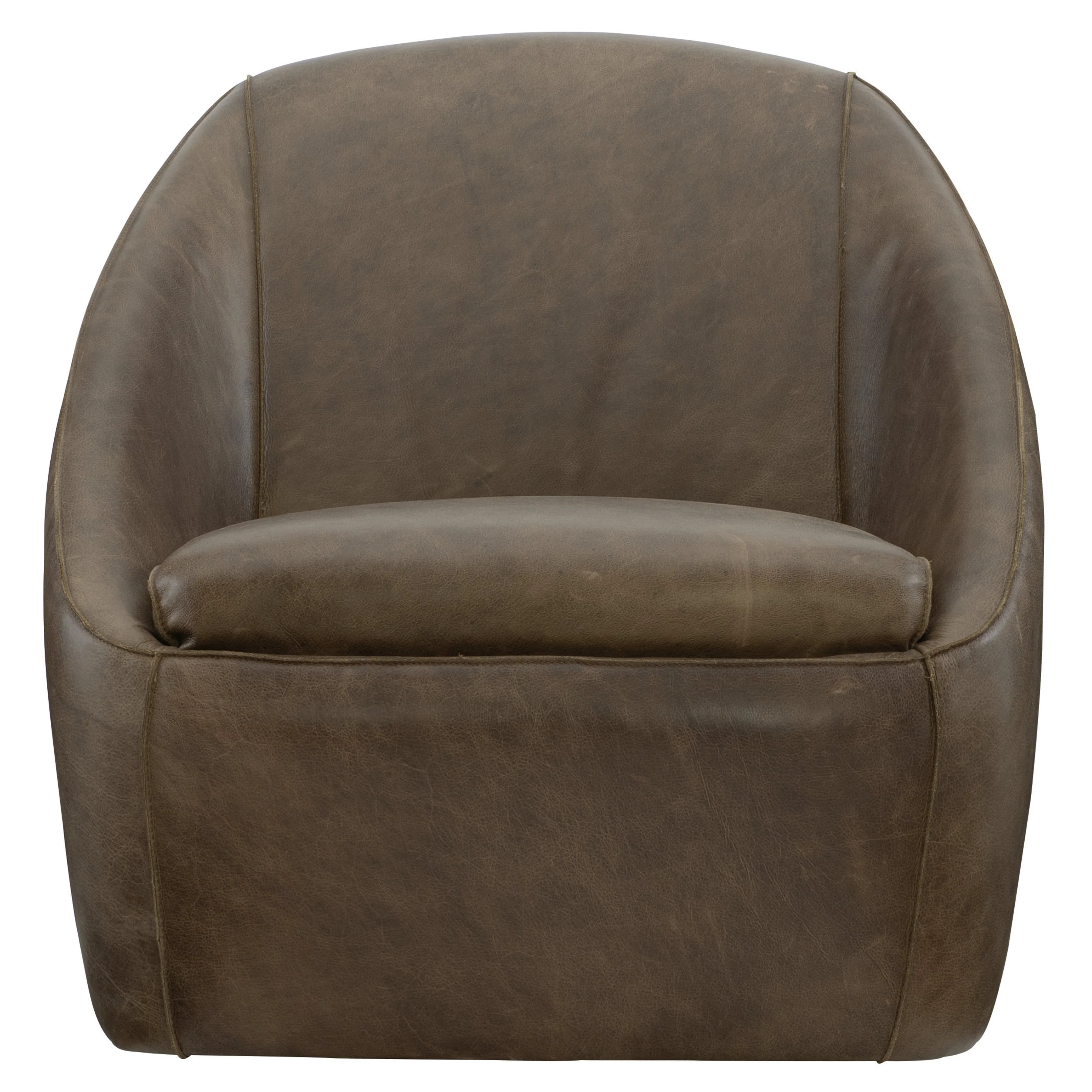 moreThe Highland Park collection, part of Bernhardt’s eclectic Loft brand, blends the best features of farmhouse and mid-century design, with a one-of-a kind appeal and laid-back vibe. Find your comfort zone in the Webster barrel swivel chair. Tightly upholstered in a subtlely antiqued brown leather, and designed with soft, organic curves, it features a soft-cushioned seat and recessed arms. Warm and inviting, you’ll want to lounge for hours in the Webster.