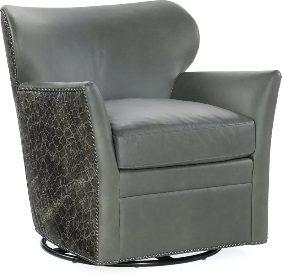The CC Traditional Swivel Chair with Nailhead Trim, made by Hooker Furniture,