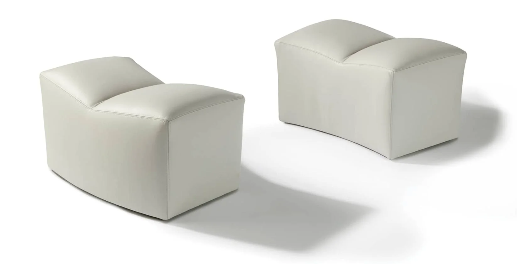 moreAn original design from midcentury modern pioneer Milo Baughman, our Saddle ottoman is a clever design fix with multiple applications. Designed in 1965, Saddle has unique charm and just plain good looks. Featuring an upholstered curved plywood front and back frame and hidden casters for easy mobility, this clever ottoman saddles up well with many of our modern classics like Roxy, Real Good, Tear Drop and Feelin‘ Groovy. Select from hundreds of our in-house curated fabrics and leathers for upholstery or provide COM.
