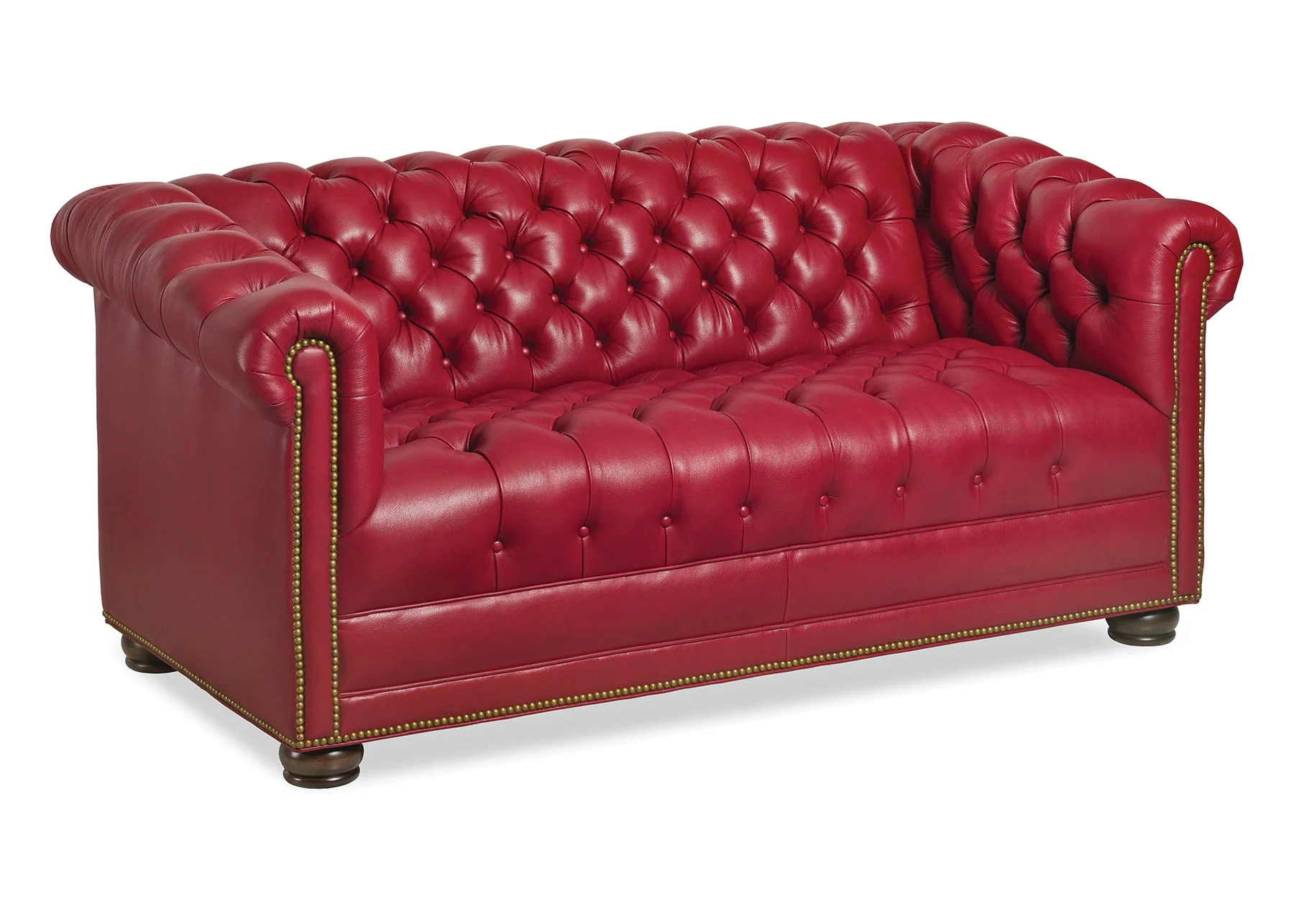moreThis stylish loveseat is perfect for anyone who wants a traditional lifestyle. The rolled tuxedo arms accompanied by the beautiful tufting on the back will make this piece stand out in your collection. With a variety of custom upholstery and wood finishes to choose from, you can pick how you want to style this piece so it's perfect for any room.