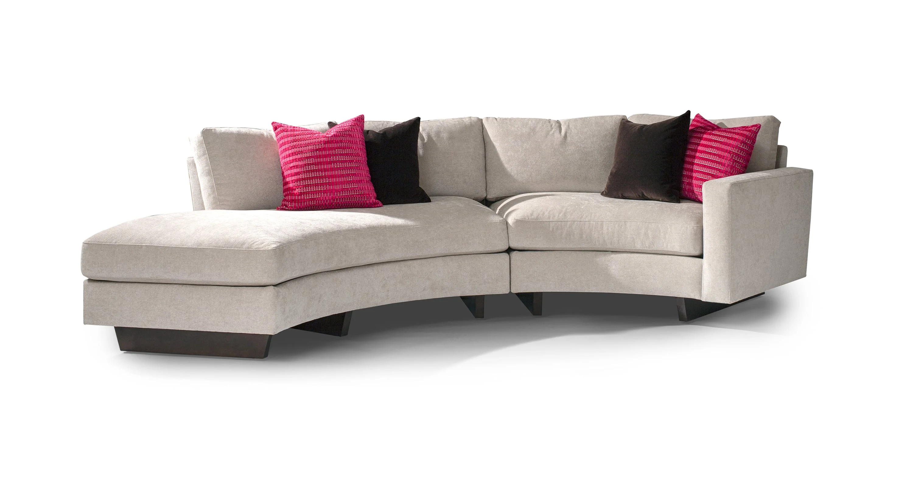 moreDesigned by Ransom Culler, the Clip 2 sectional sofa is one of our new contemporary classics. Our Clip 2 series features unique "clips" that support the sofa but also give the sofa a handsome profile from both the front and back. The Clip 2 modular system is also one of our super systems with a multitude of modular units to mix and match. Our curved Clip 2 pieces can match with our Clip 2 straight pieces, allowing for a myriad of possible seating configurations. Clip 2 features spring down seating. Select from any of our in-house curated fabrics or leathers or provide COM. Choose any TC wood finish on maple for base and leg finish. Clip 2 is also available with polished stainless steel legs and base as Cool Clip 2, brushed bronze legs and base as Toasted Clip 2 or acrylic legs and base as Ice Clip 2.