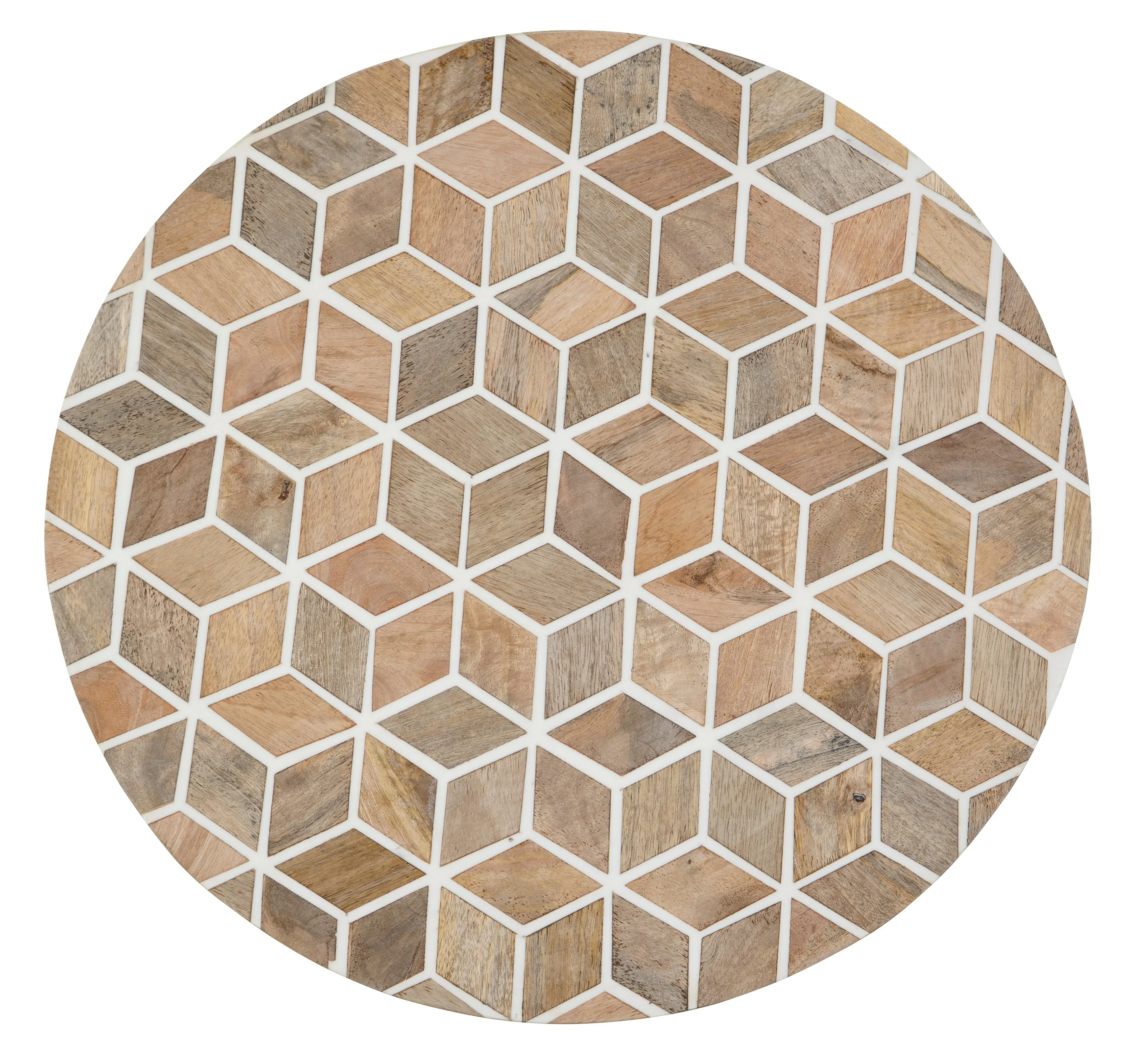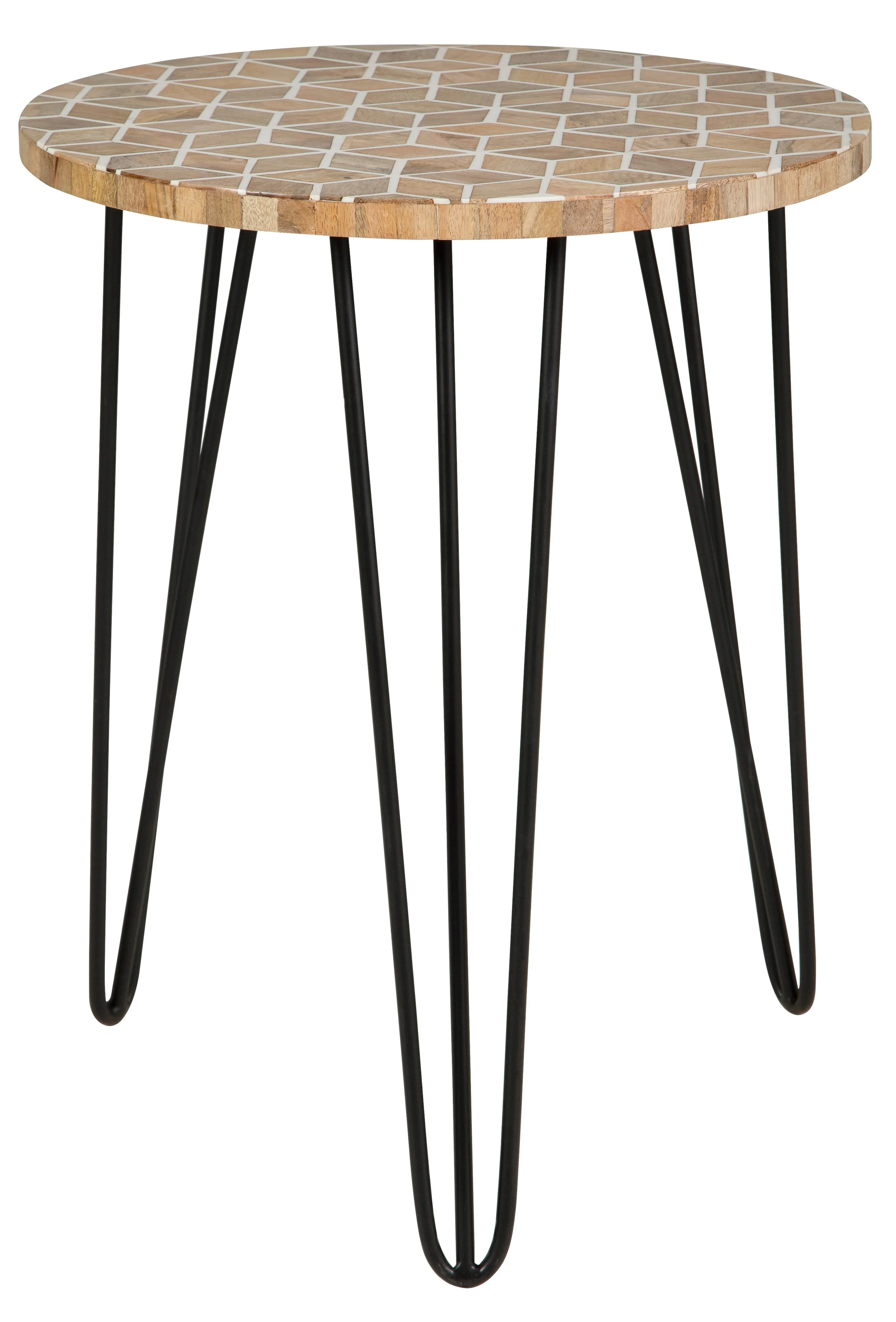 moreGround your space with the geometric appeal of this accent table. Both a dynamic decorative accent and a functional surface, the eye-catching design on top is created by combining wood and a white resin inlay. Hairpin legs are a mod touch.