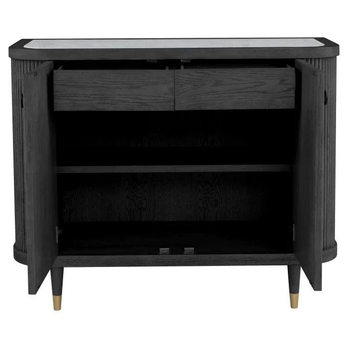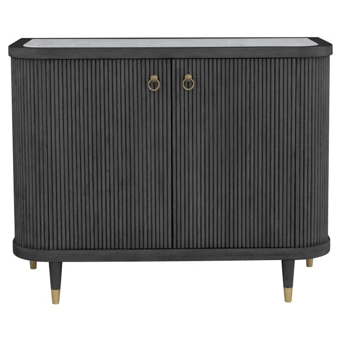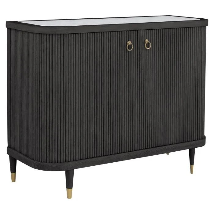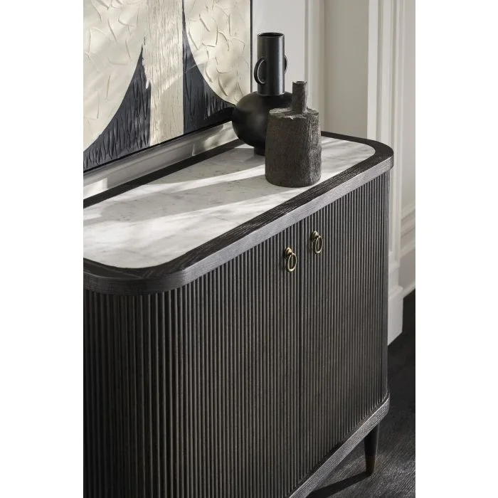 moreCrafted of red oak solids and veneers, our Everett Collection features rounded tambour panels and figured red oak veneered surfaces. Everett casegoods are accented with Carrera marble and brushed brass hardware and ferrules. Stocked in Biscotti orCharcol. Everett is also available in 40+ additional custom finishes via our Monogram Program. The Everett Collection is available for the living room, bedroom or dining room