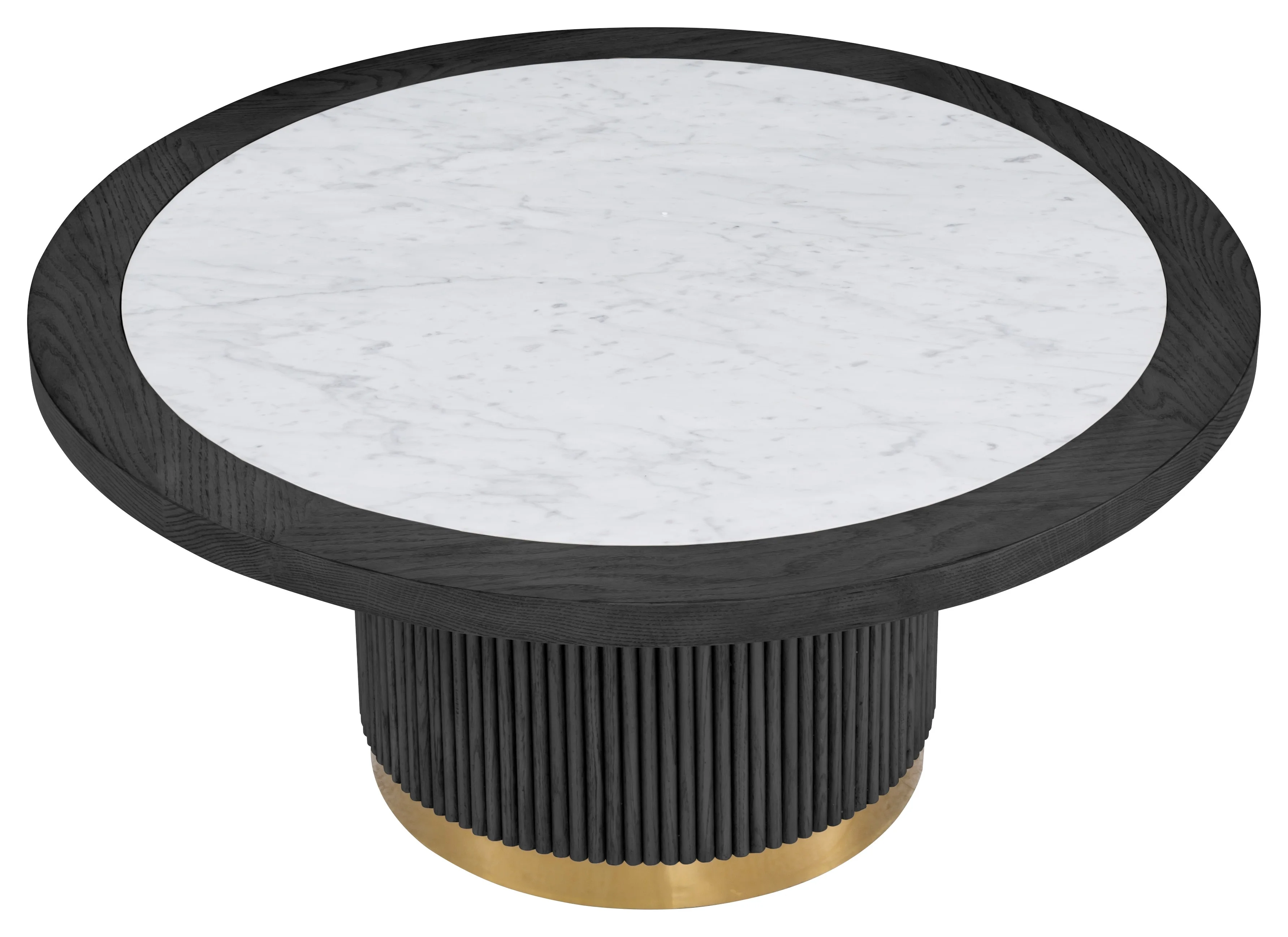 Transitional Large Round Bunching Cocktail Table with Inset Stone Top