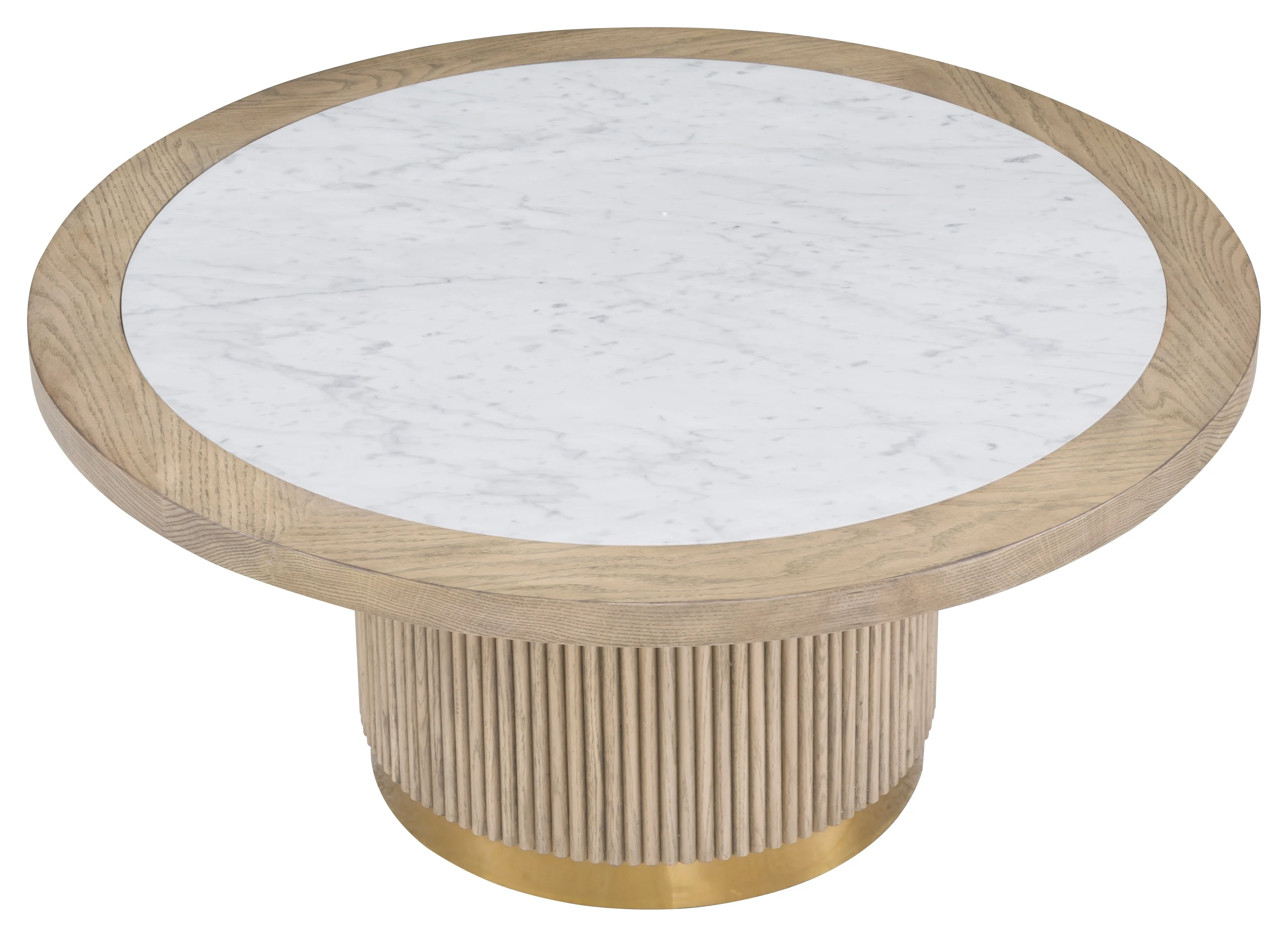 Transitional Large Round Bunching Cocktail Table with Inset Stone Top