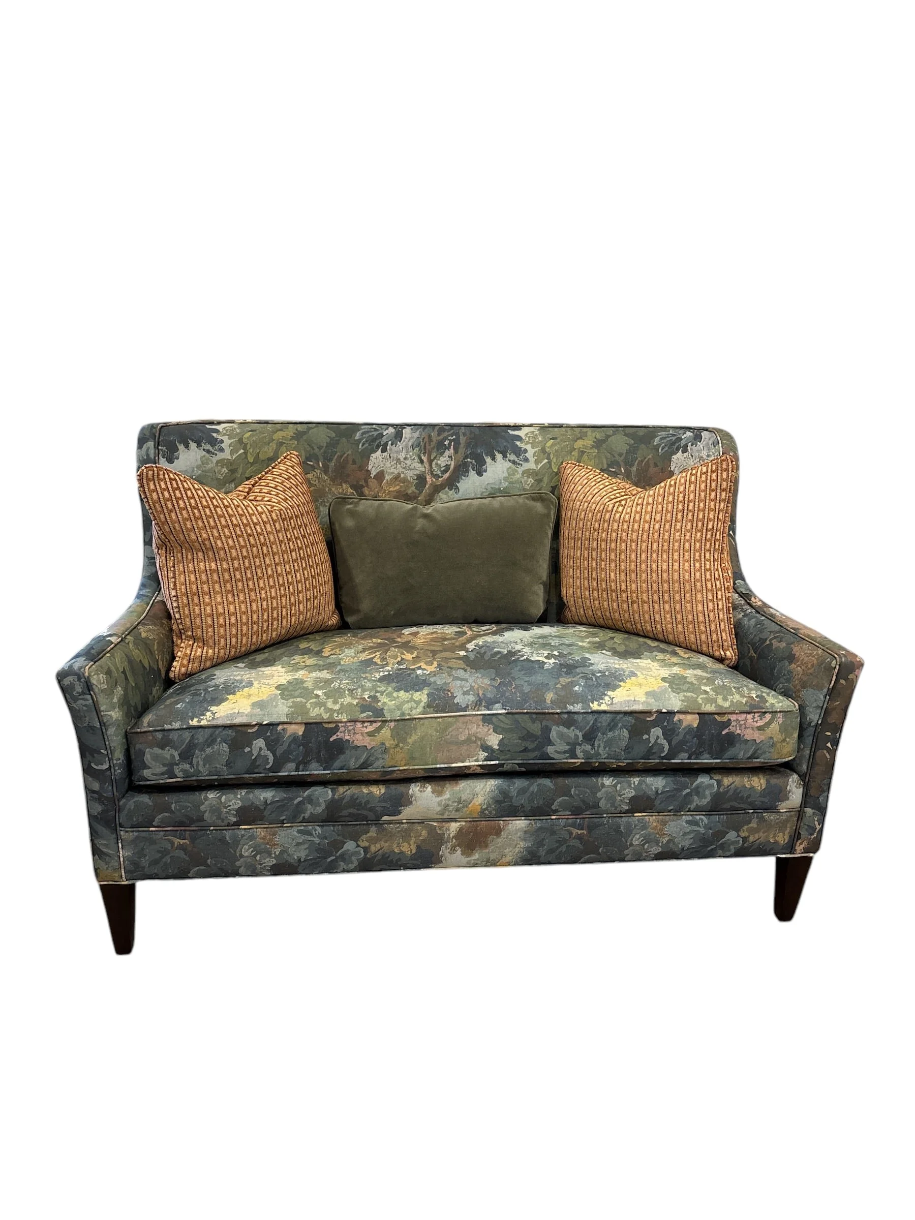 The Everly Transitional Wing Back Settee with Throw Pillows, made by HF Custom,