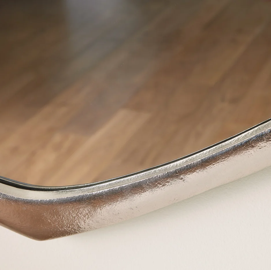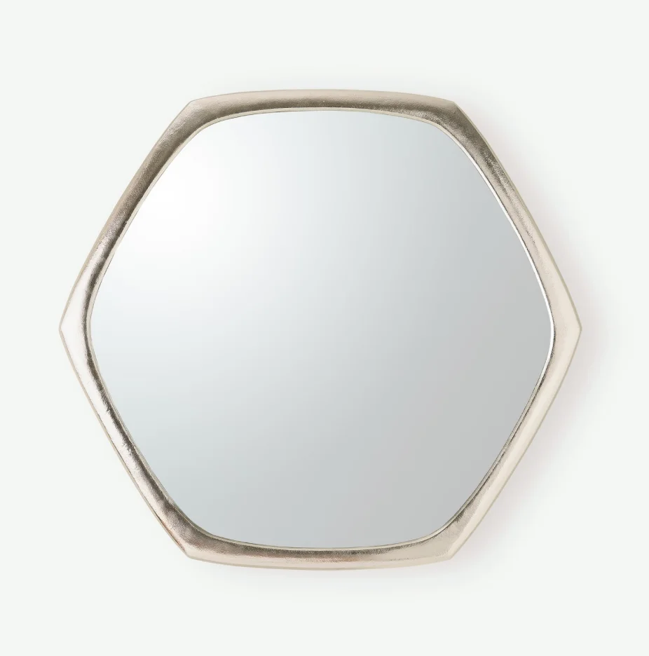 moreAdd a bold touch to your decor with the Hexagon Mirror. Crafted from aluminum and featuring a textured nickel finish, this eye-catching piece is perfect for making a statement on any wall.