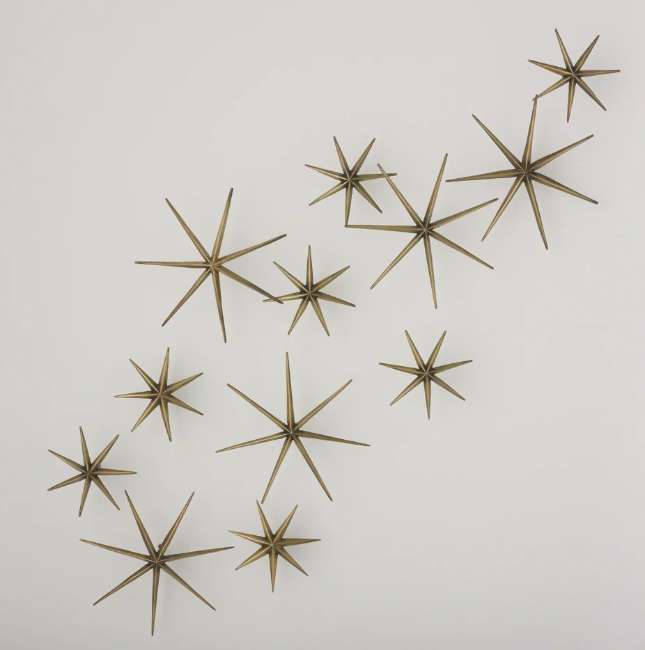 moreOur Etoile wall decor is a designer's dream. An iconic Mid-Century motif, we designed this set of star wall decor to offer endless display options. Carefully crafted from solid brass sheeting, the stars and wall posts come in varied sizes and are modular. You can customize the stars with countless possibilities. Arrange all twelve on one wall, or group them throughout the home.