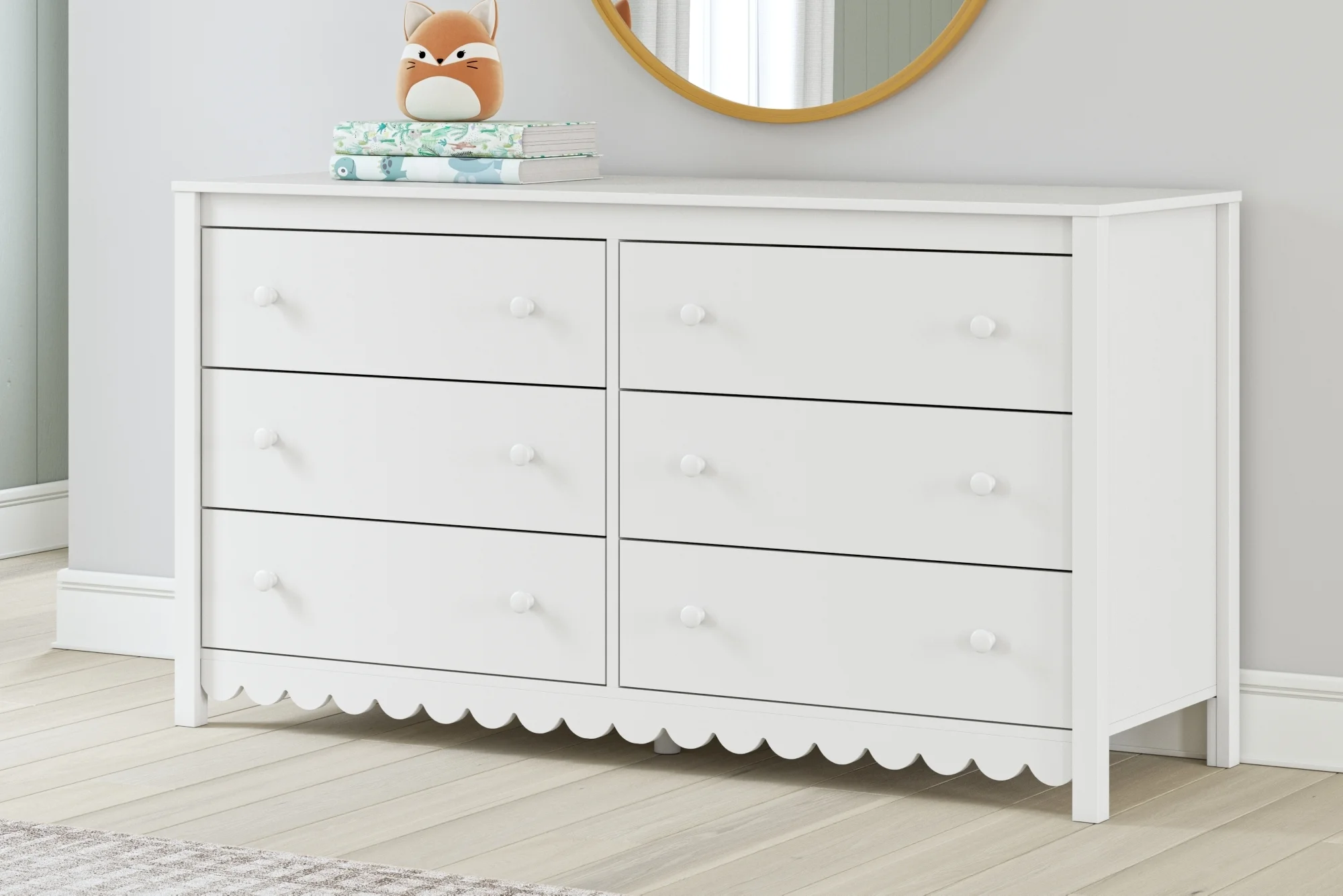 moreThanks to its playful scalloped design, this dresser is the perfect fit for cottage or coastal farmhouse interiors. The matte white finish serves as the perfect backdrop to showcase your personal taste and creativity. And its spacious drawers let you say goodbye to clutter and hello to well-organized whimsy.