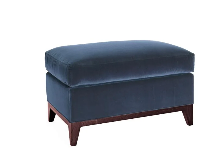 moreThe iconic Jules series is defined by its incredible comfort and elegant shape. The Jules Ottoman has a choice of five bases; B1 Exposed Wood with Tapered Leg, B2 Tapered Leg, B3 Upholstered Base, B4 Dressmaker Skirt, and B5 Wood Trim. The B3 and B4 bases have the option of recessed casters for an up-charge. Standard with a semi-attached cushion.