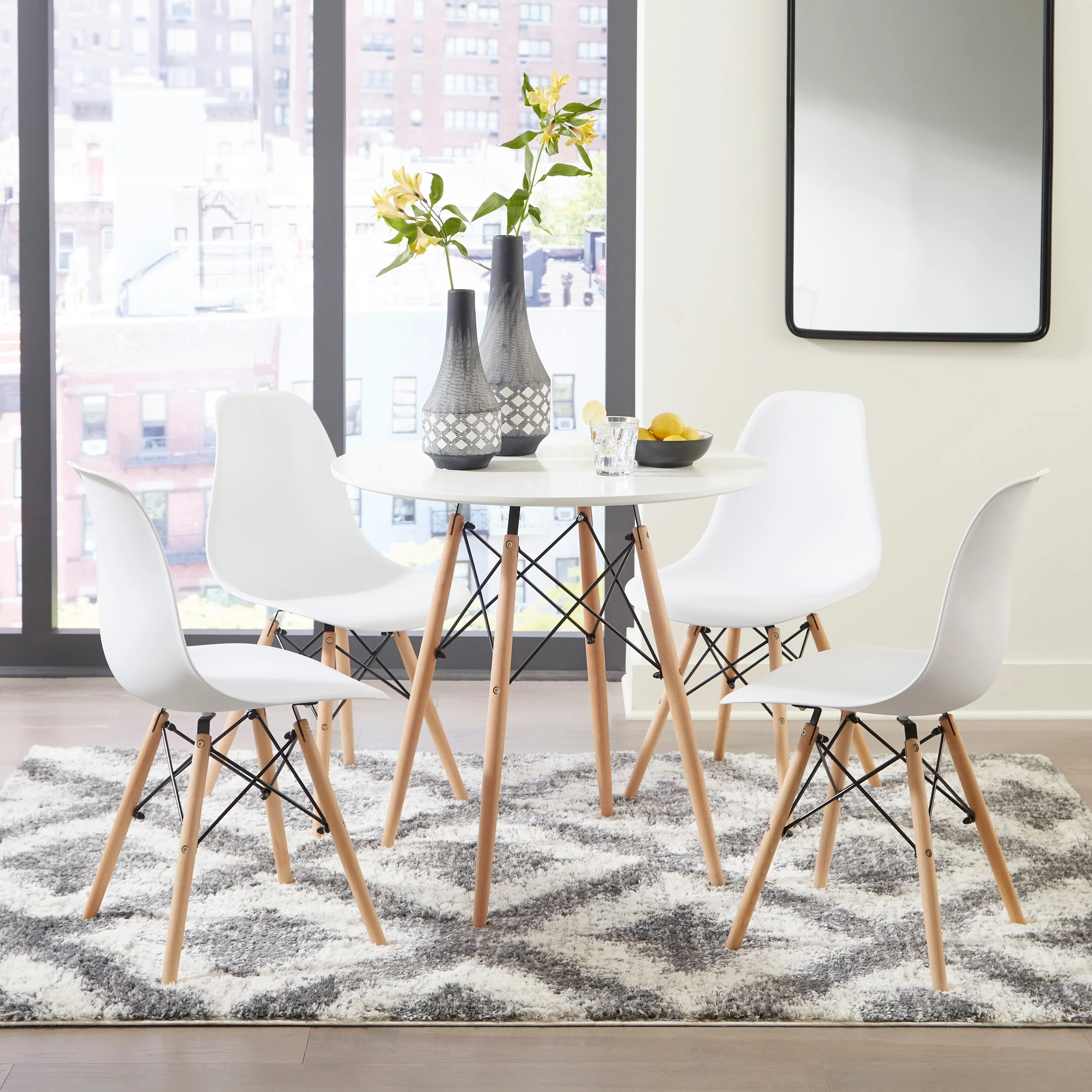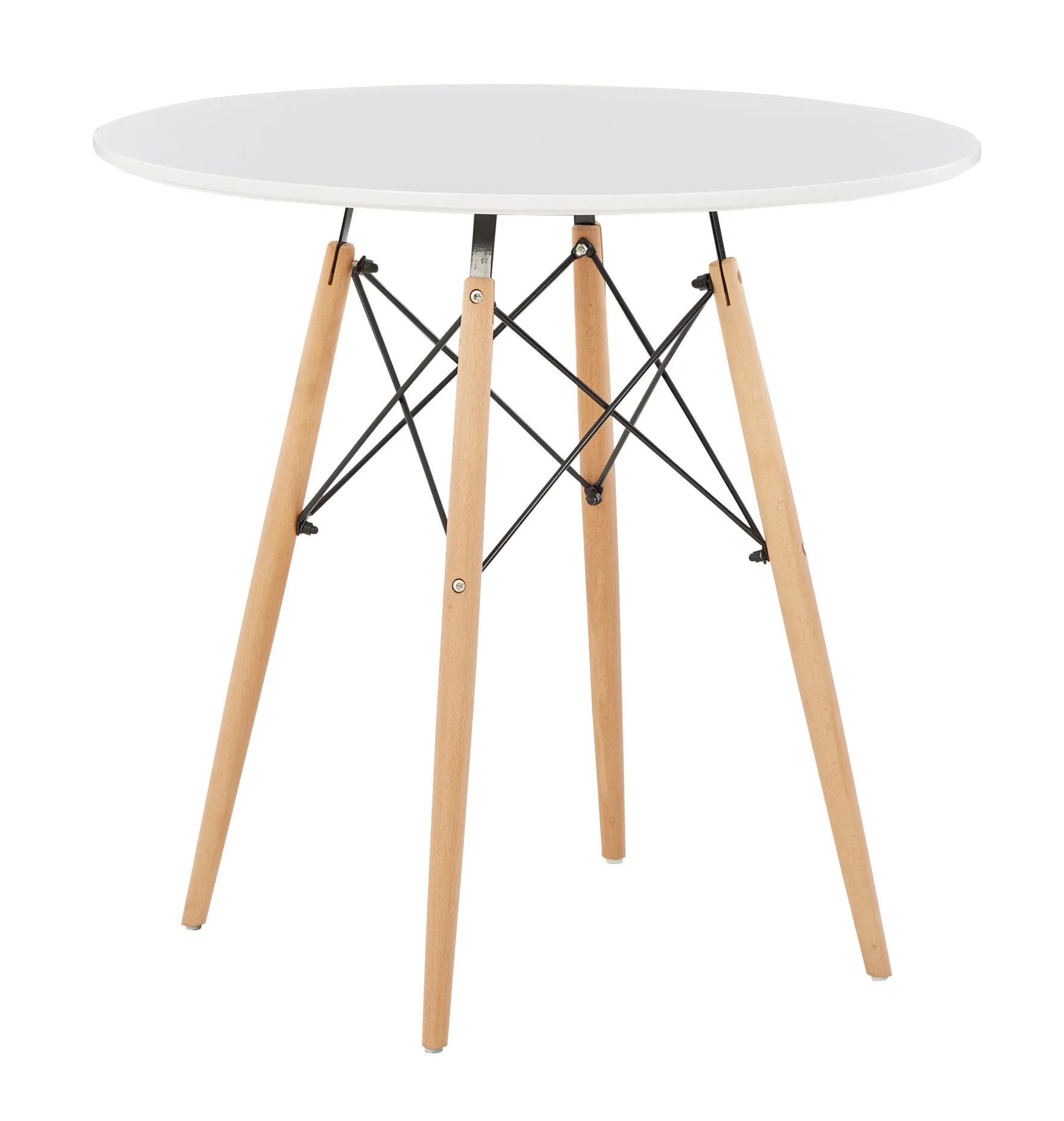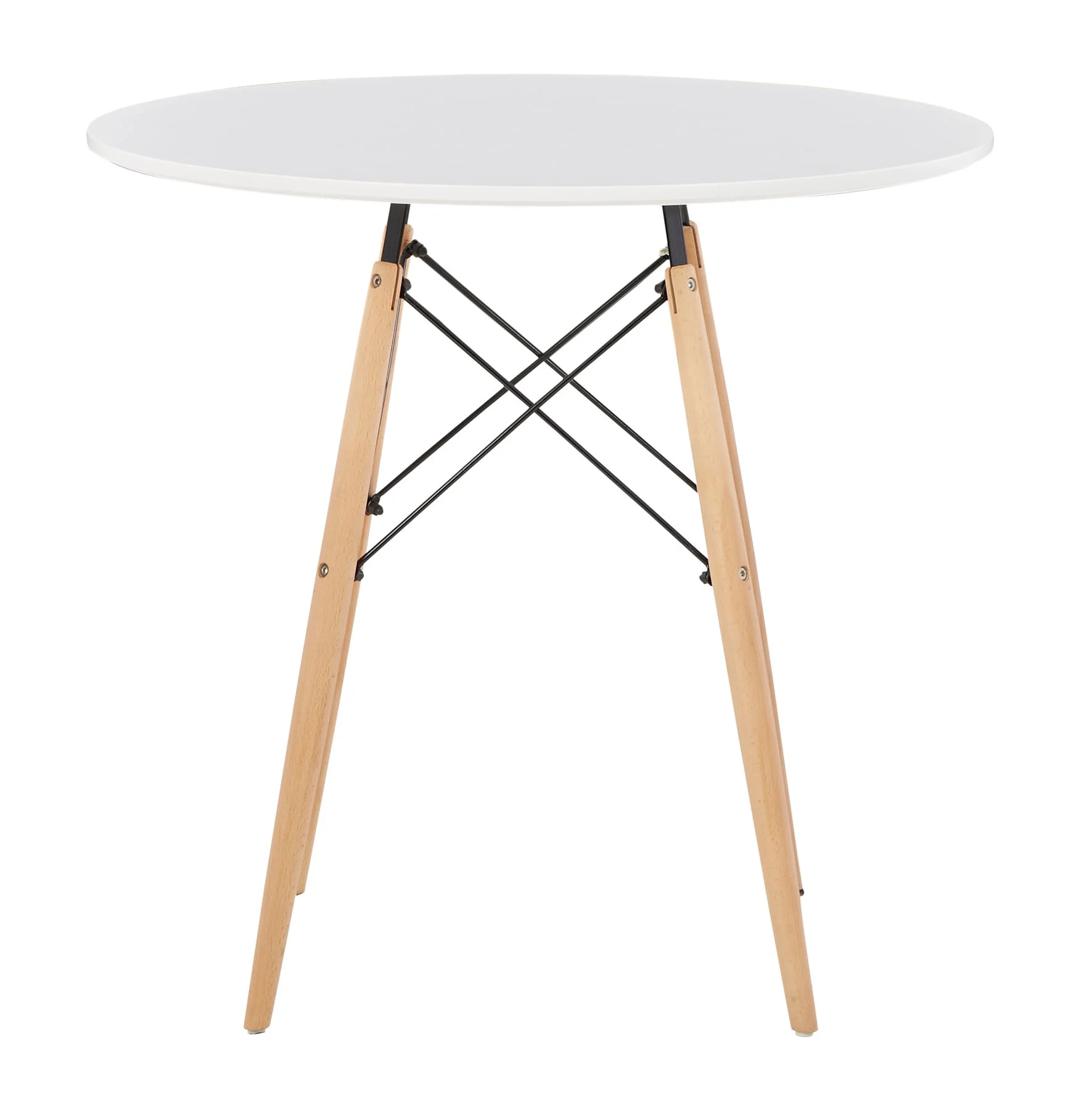 moreA contemporary take on a classic look, this dining room table adds a touch of artistic flair to your dining experience. The 32-inch-round dining table is designed with small space living in mind. The painted white top, supported by a metal framework and solid beech wood legs, is intricately eye-catching, allowing you and your guests to dine in style. For the chairs, the moulded white plastic seat with metal and beech wood base is intricately eye-catching.