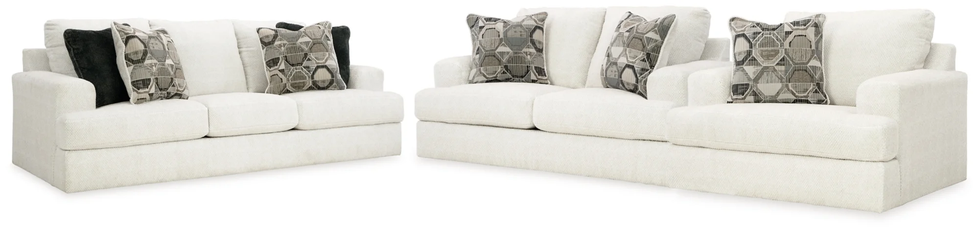 moreCraving casual refinement? This seating package has you covered. Its decidedly contemporary frames cradle sizable cushions in an ultra-soft neutral hue, lightening the mood in your living room with simple style and everyday comfort. Solid and geometric accent pillows perfect the chic-meets-cozy vibe.
