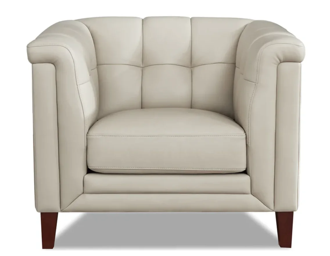 moreEnergize your living room with the vibrant Arvo Leather Collection, a dynamic ensemble full of flair. Designers have masterfully reimagined a classic mid-century modern design, incorporating a gently curved silhouette, splayed wood legs, and blind biscuit tufting. The tufted shelter arms not only soften the overall look but also add a touch of warmth and sophistication, enhancing the lively and stylish appeal of this striking collection.