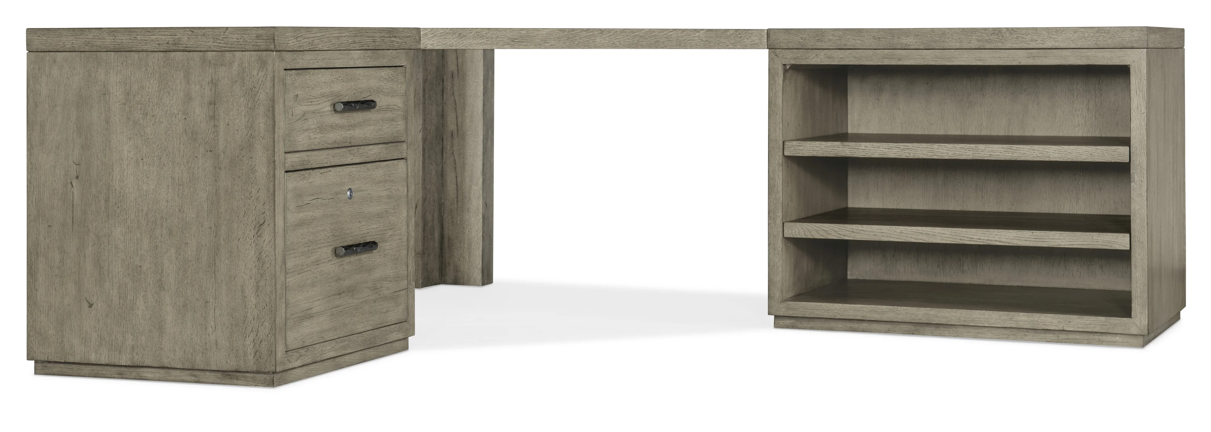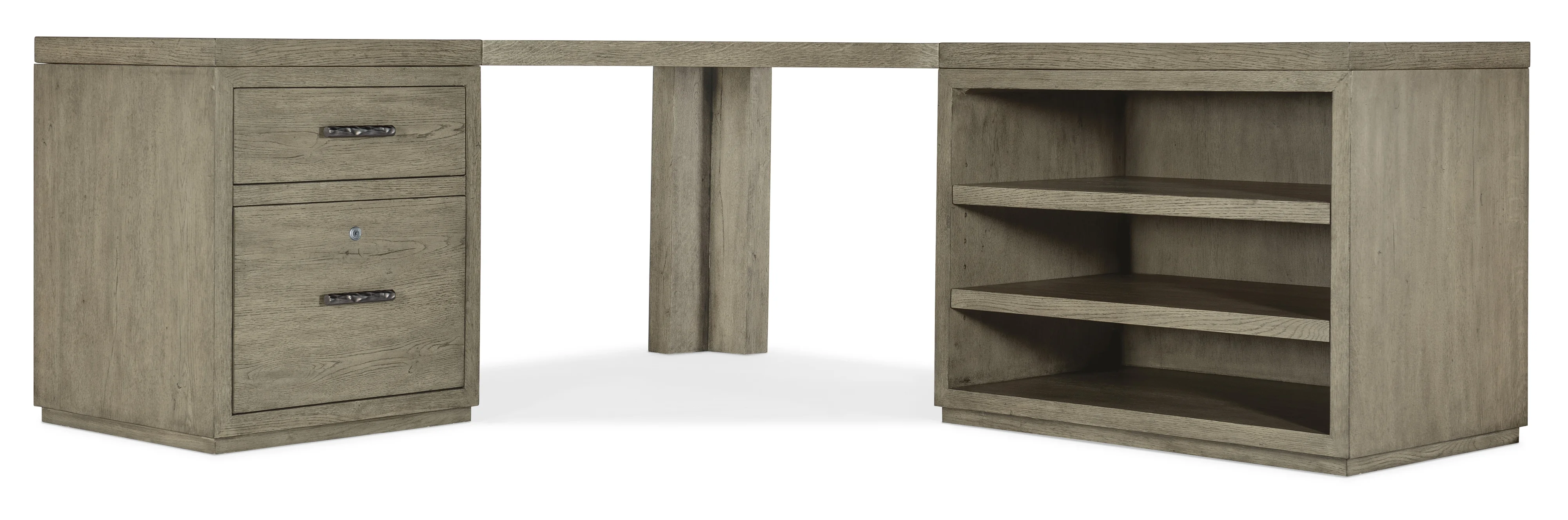 The Linville Falls Casual Corner Office Storage Desk with File Cabinet and Open Shelf Cabinet, made by Hooker Furniture,