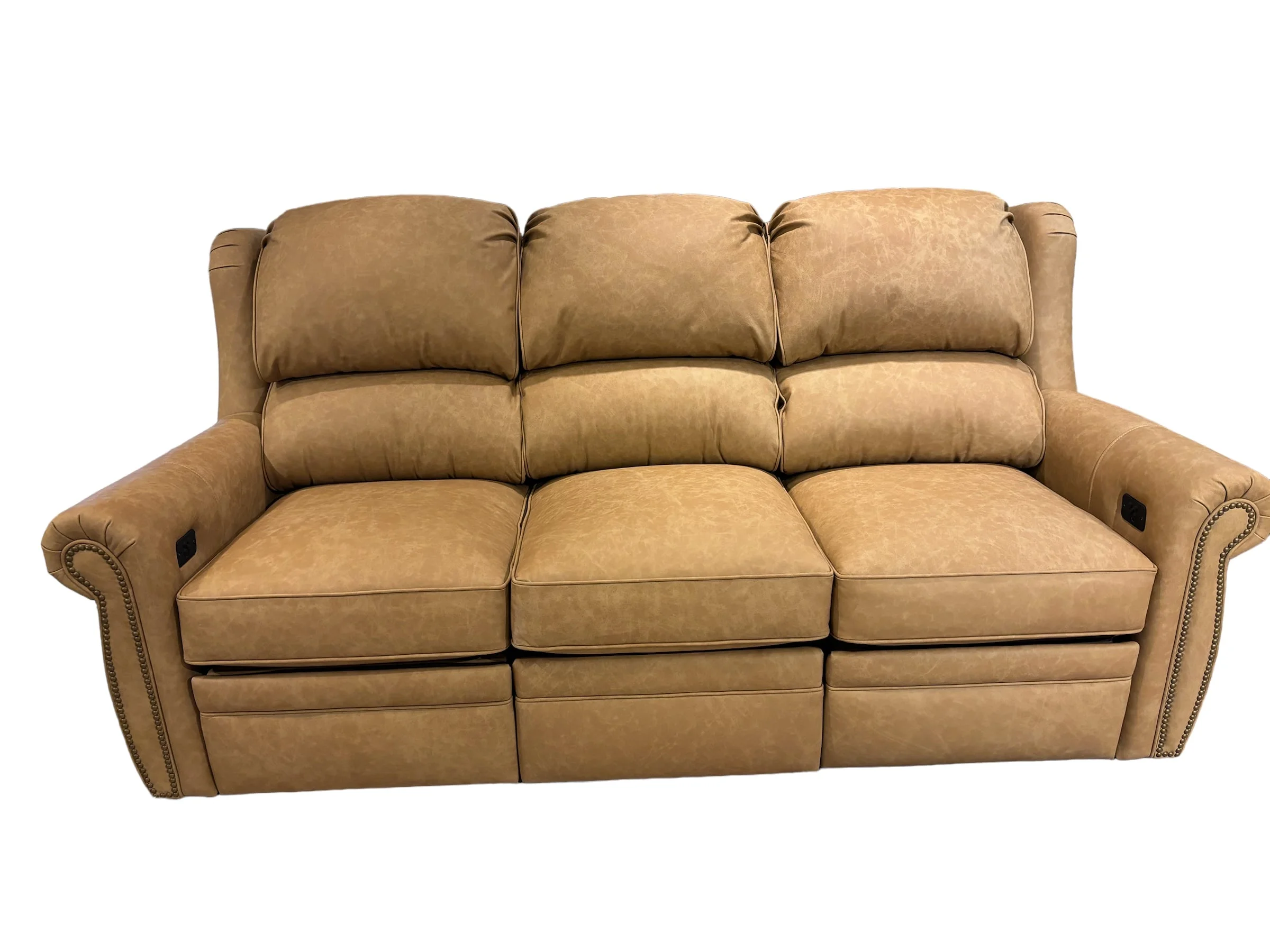moreThe Discovery Sofa L & R Full Recline w/Articulating HR comes standard with a Spring Down seat and Tight Bustle Back with your choice of leather, finish & nailhead trim. Luxury, defined: A state of great comfort and extravagant living. It’s the epitome of what we do at Bradington-Young. Our collection of luxury motion silhouettes provides the highest quality seating available in a wide variety of styles, premium leathers and fabrics ranging from timeless traditional to modern. Plus, our assortment of city-scaled frames with clean designs and classic styling can now deliver our world-class reclining functionality to smaller living spaces. Power footrests, headrests and optional lumbar support on certain styles provide exceptional comfort with sleek, tailored designs that are activated by our stylish controls to precisely – and easily – adjust your own personal comfort level.