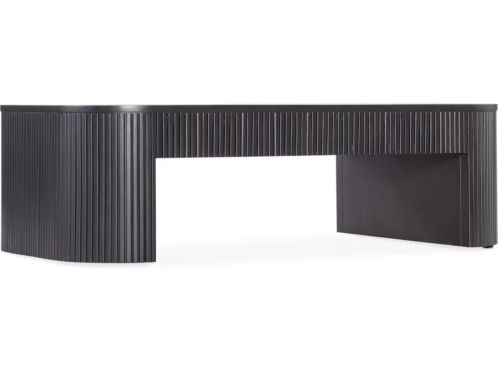 moreCrafted of Mahogany Solids, the Eden Coffee Table is modern, tactile and crisp. The rectangle-shaped table with rounded corners has a ribbed motif and black finish. The table is a spacious 54 inches wide and 28 inches deep.