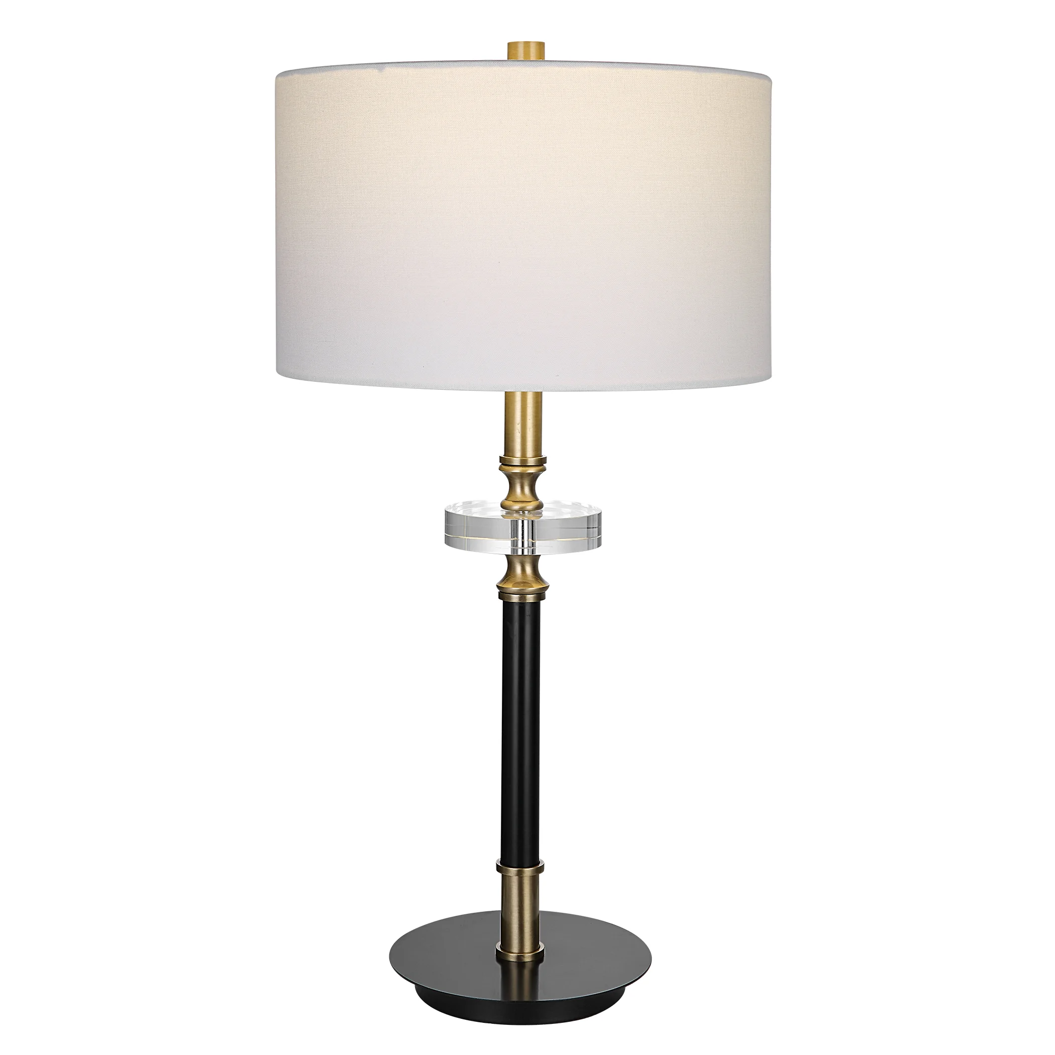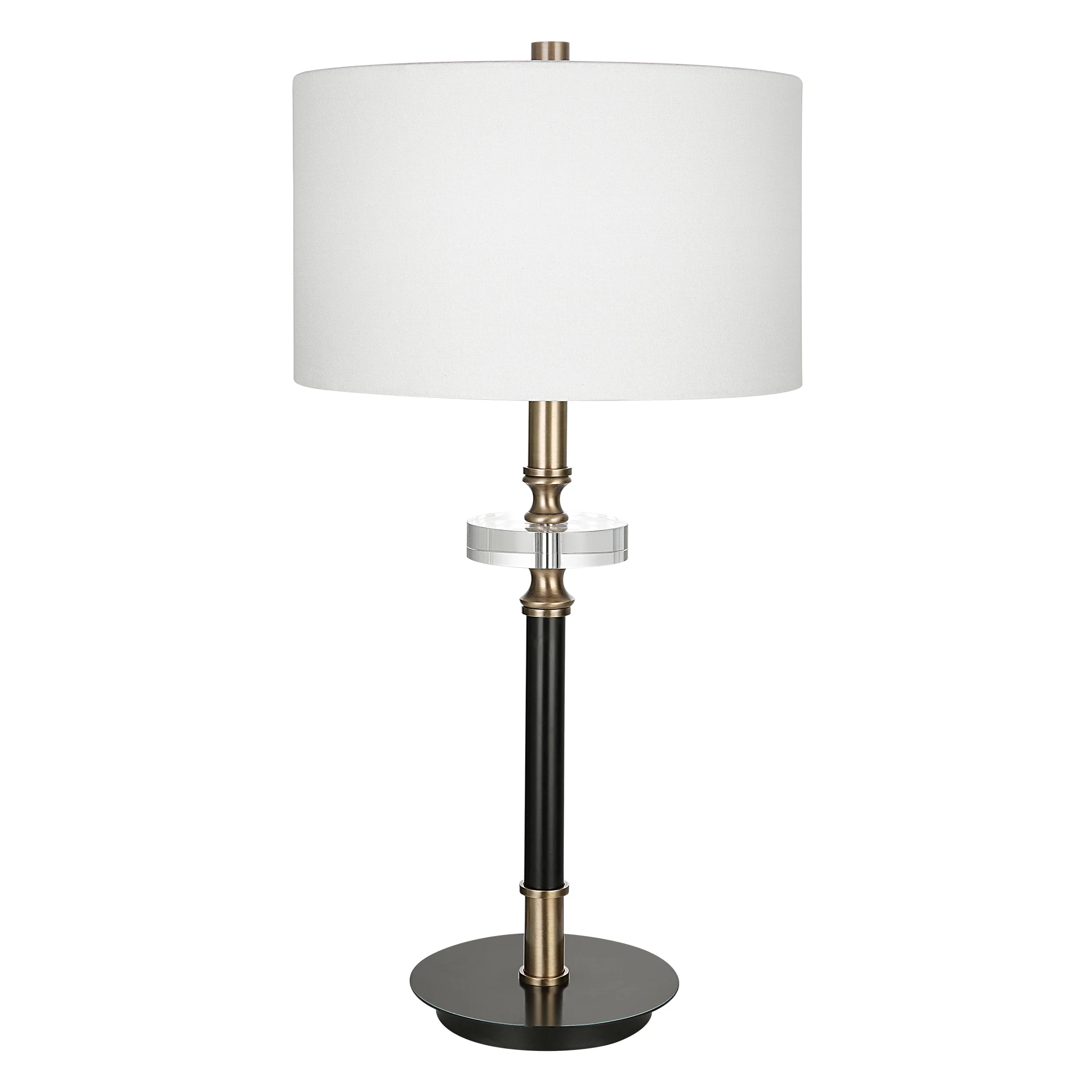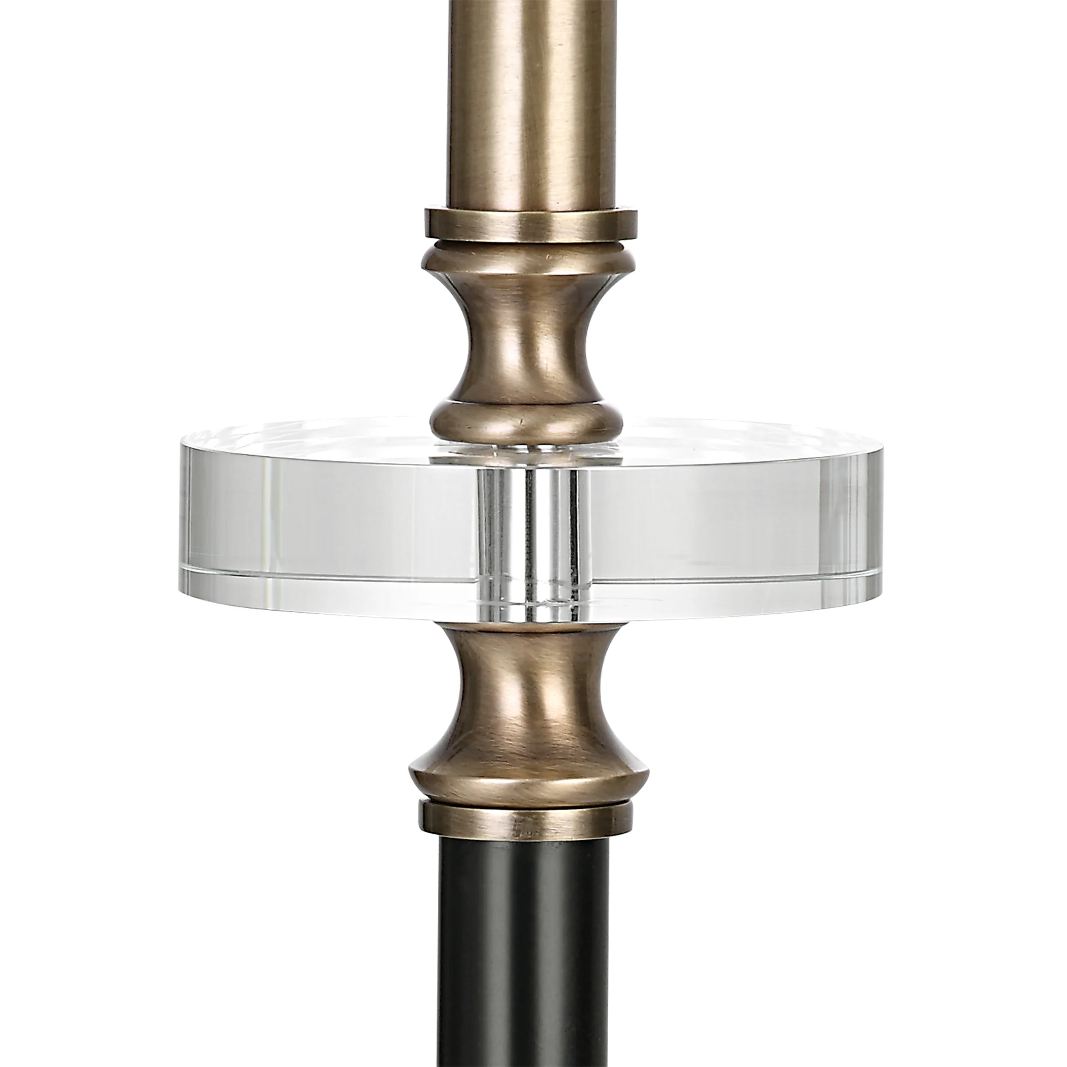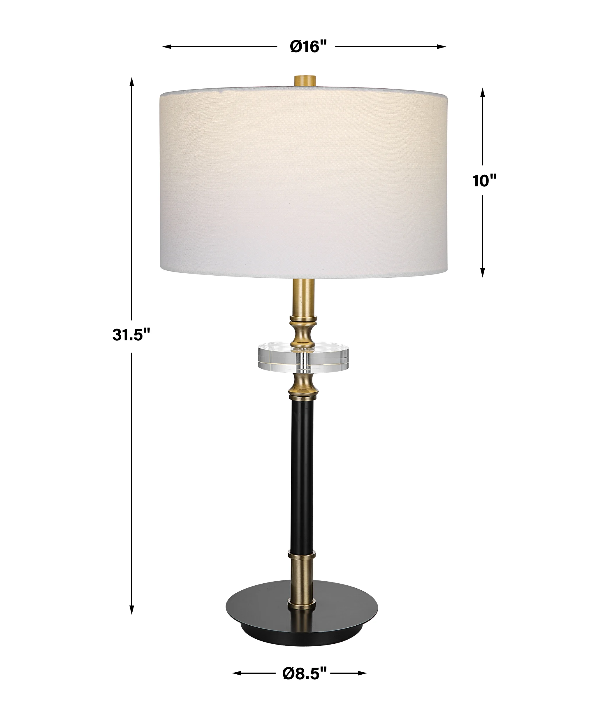 Traditional Elegance Is Showcased In This Table Lamp, Finished In An Aged Black With Antique Brass Plated Accents And A Thick Crystal Ornament.