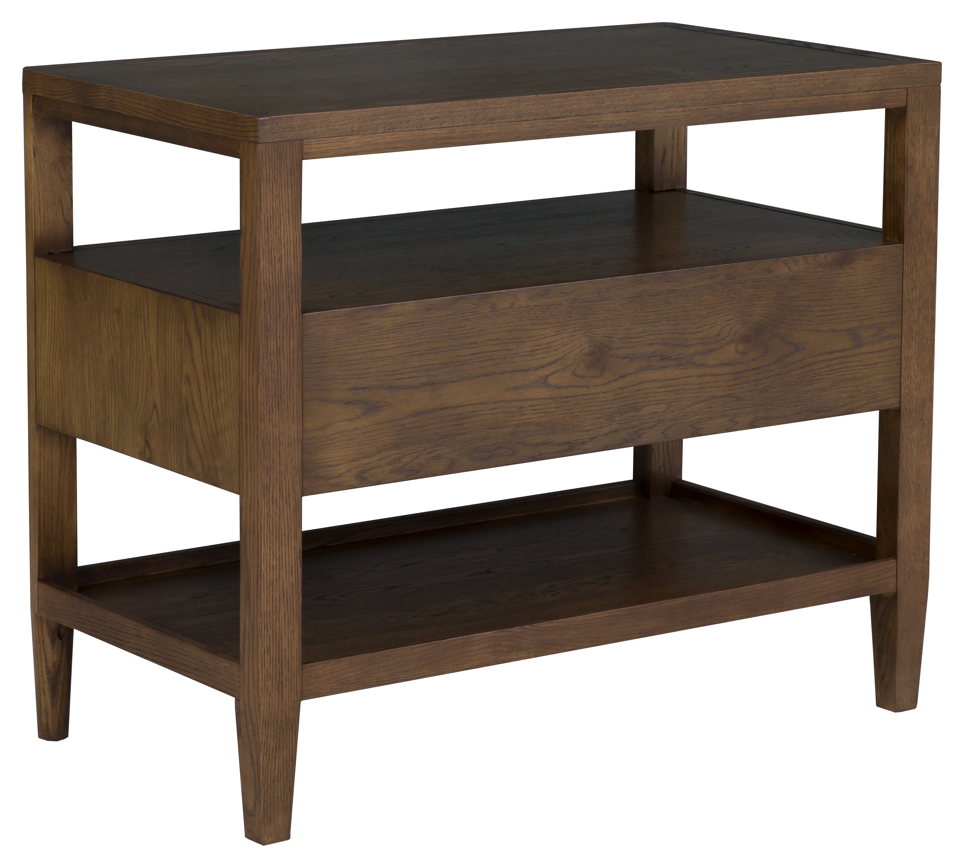 The Maxwell Transitional 1-Drawer Nightstand with Pull-Out Shelf, made by Fairfield,