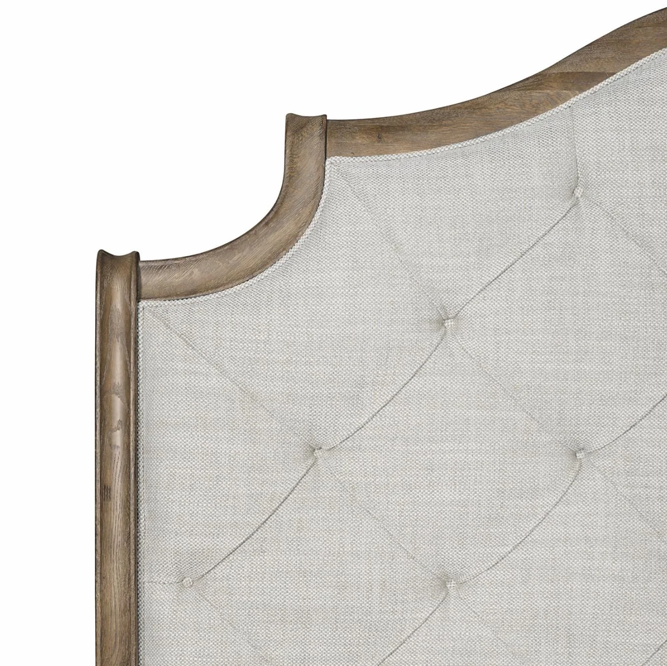 Giving a modern facelift to a traditional design, the Rustic Patina sleigh bed adds comfort and softness with a button-tufted upholstered headboard. Elegant curves take a casual turn with gently weathered wood and rustic touches. Shown here in the Peppercorn finish, the design is also available in a lighter Sand finish.