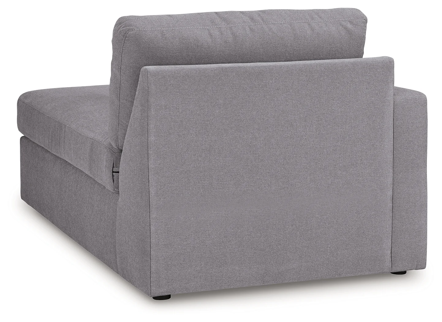 Includes 5 modular pieces: left-arm facing corner chaise, 2 armless chairs, audio console with storage and right-arm facing corner chaise