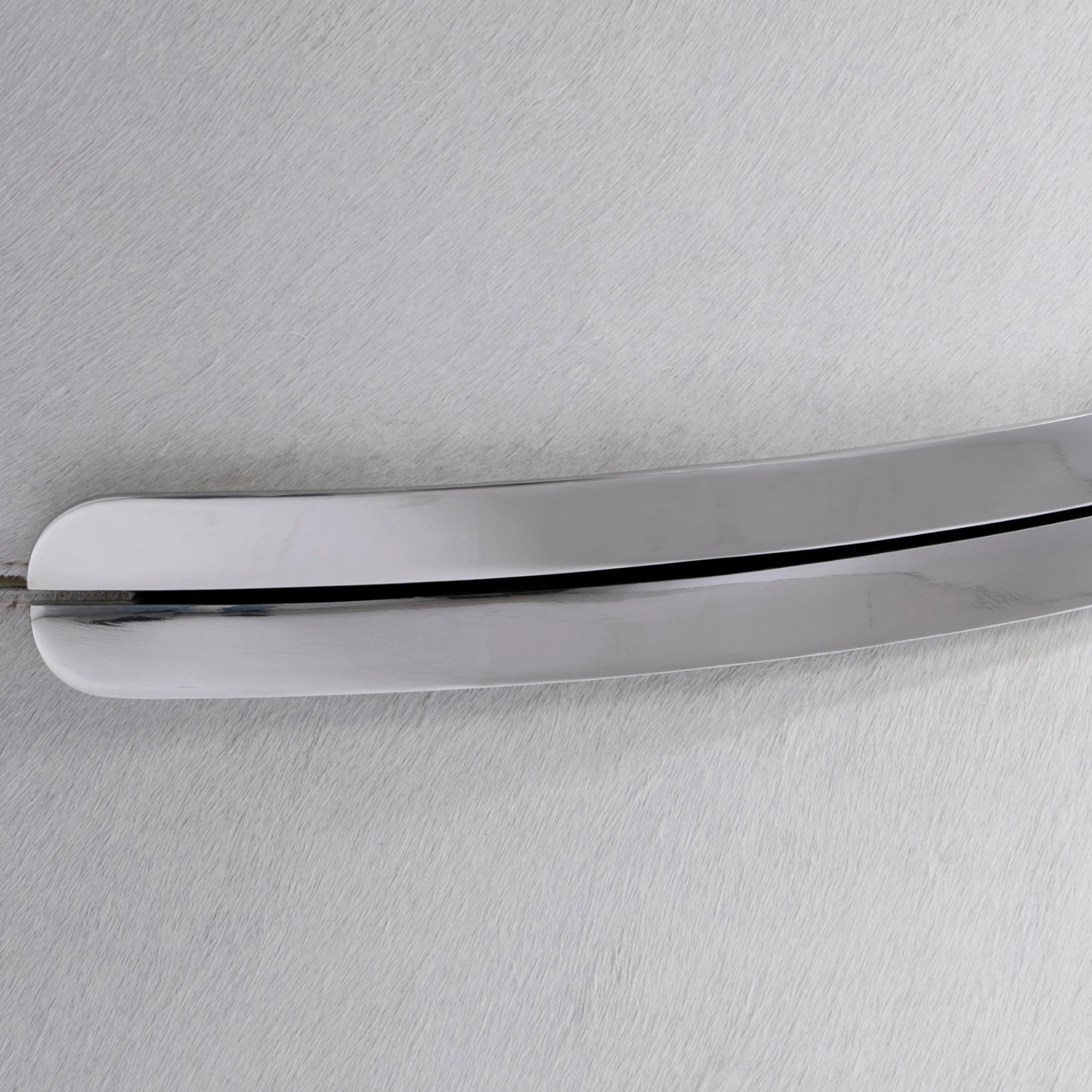 Metal hardware and four tapered round feet in Polished Stainless Steel finish