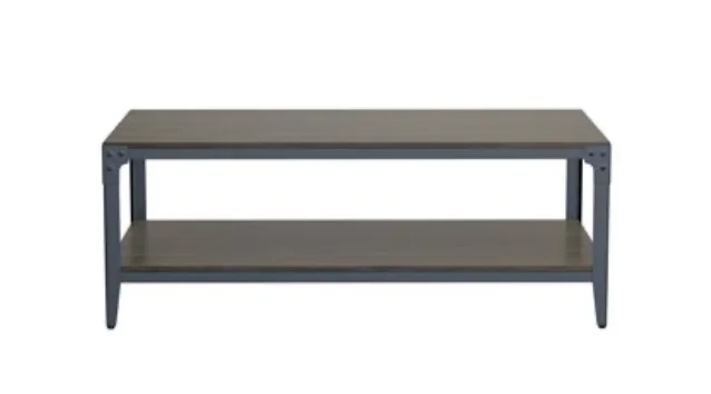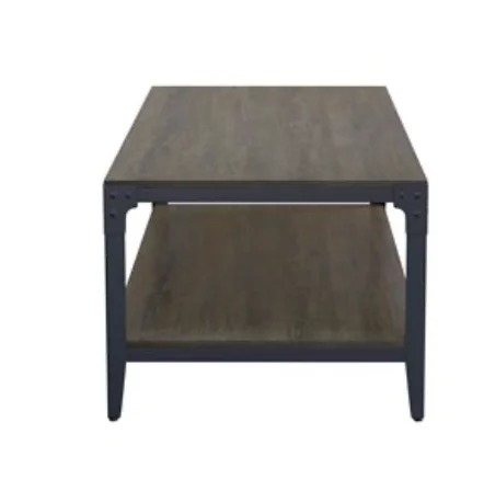 moreIndustrial-inspired with antique notes, the Derek collection is a beautiful addition to your home. The easy-care melamine top is finished in a neutral-toned dark wood grain and wrapped by a black powder-coated metal base. A lower shelf fits in extra storage and adjustable feet on the bottom of each leg make it simple to assure a level table. With faux rivet accents on each framed corner, these tables will work just as easily in a rustic or urban setting, giving you versatile styling for years to come.