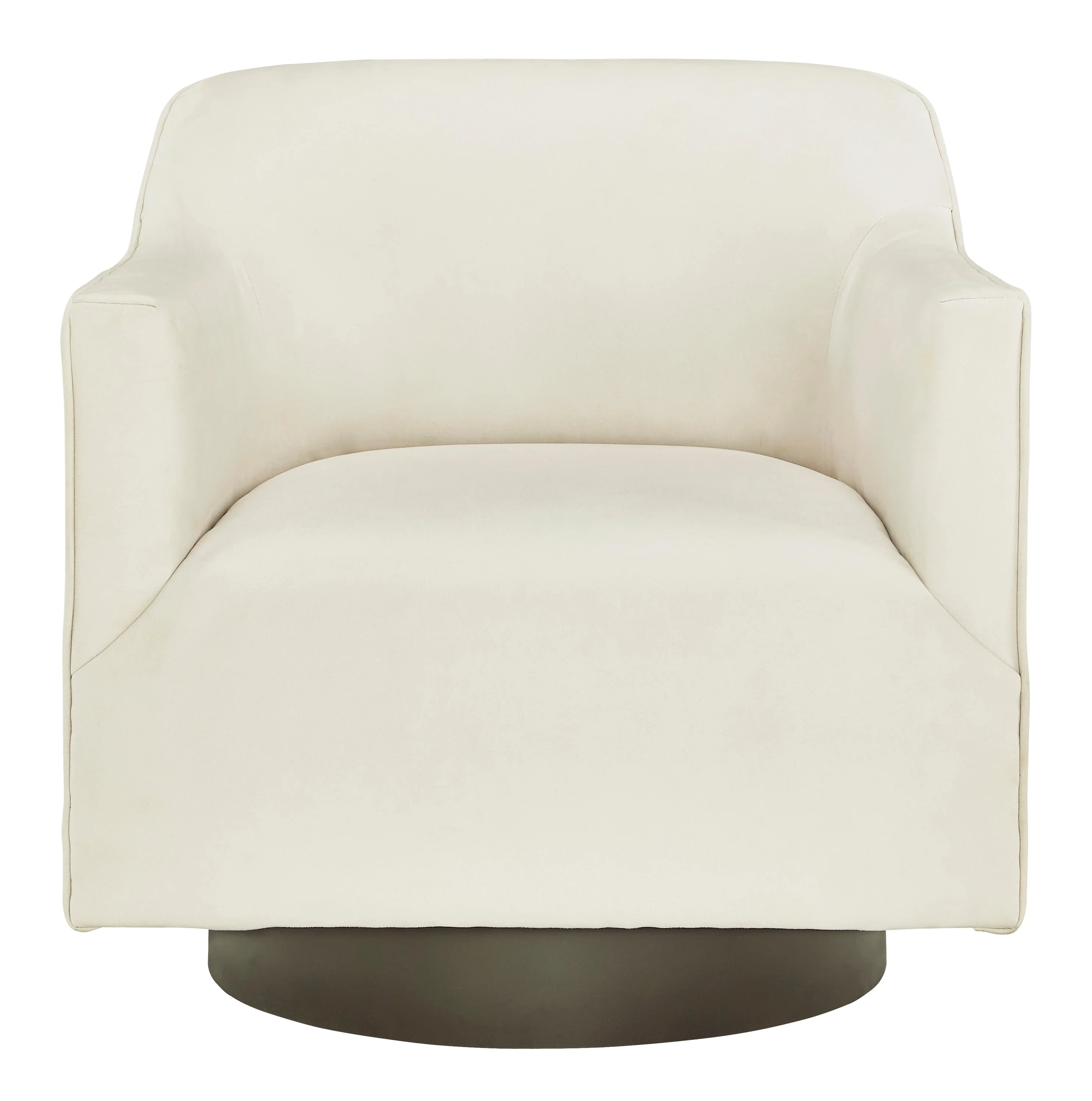 moreLooking to upgrade your living space without draining your pocketbook? Add the upscale touch of leather at a scaled-down faux leather price with this swivel accent chair. In a durable faux leather that emulates nubuck leather, this stunning white chair makes a lasting impression. The swivel base in a dark bronze tone creates a visual contrast with a must-have contemporary feel. Designed to age gracefully, it's the softer side of seating, where comfort is made in the suede.