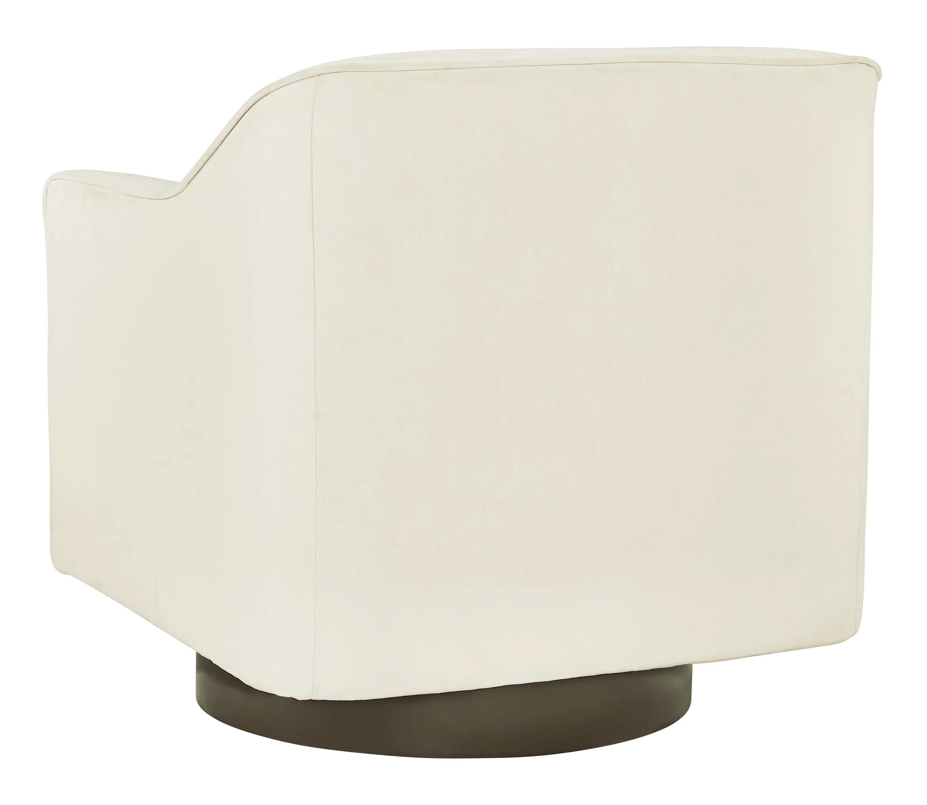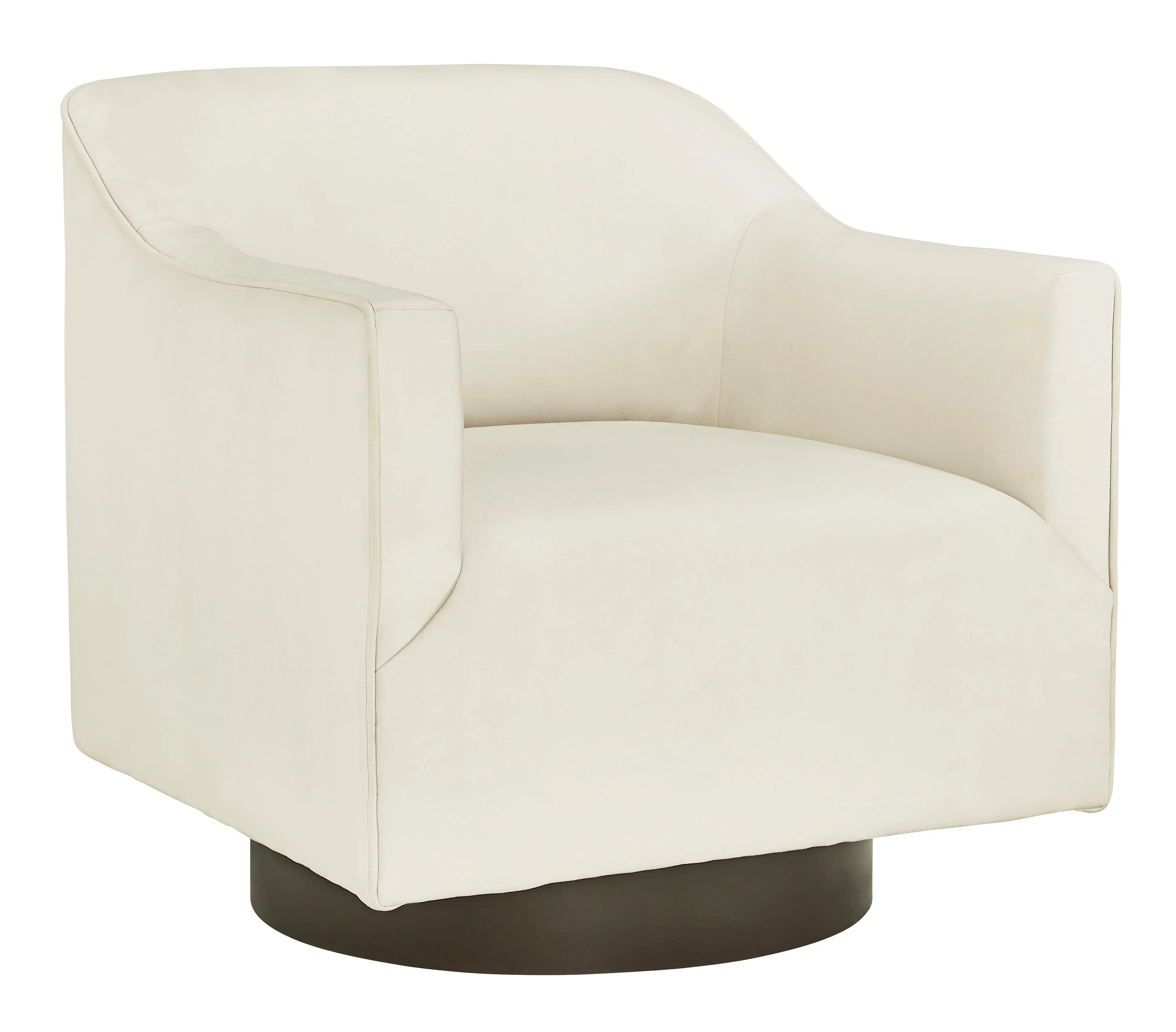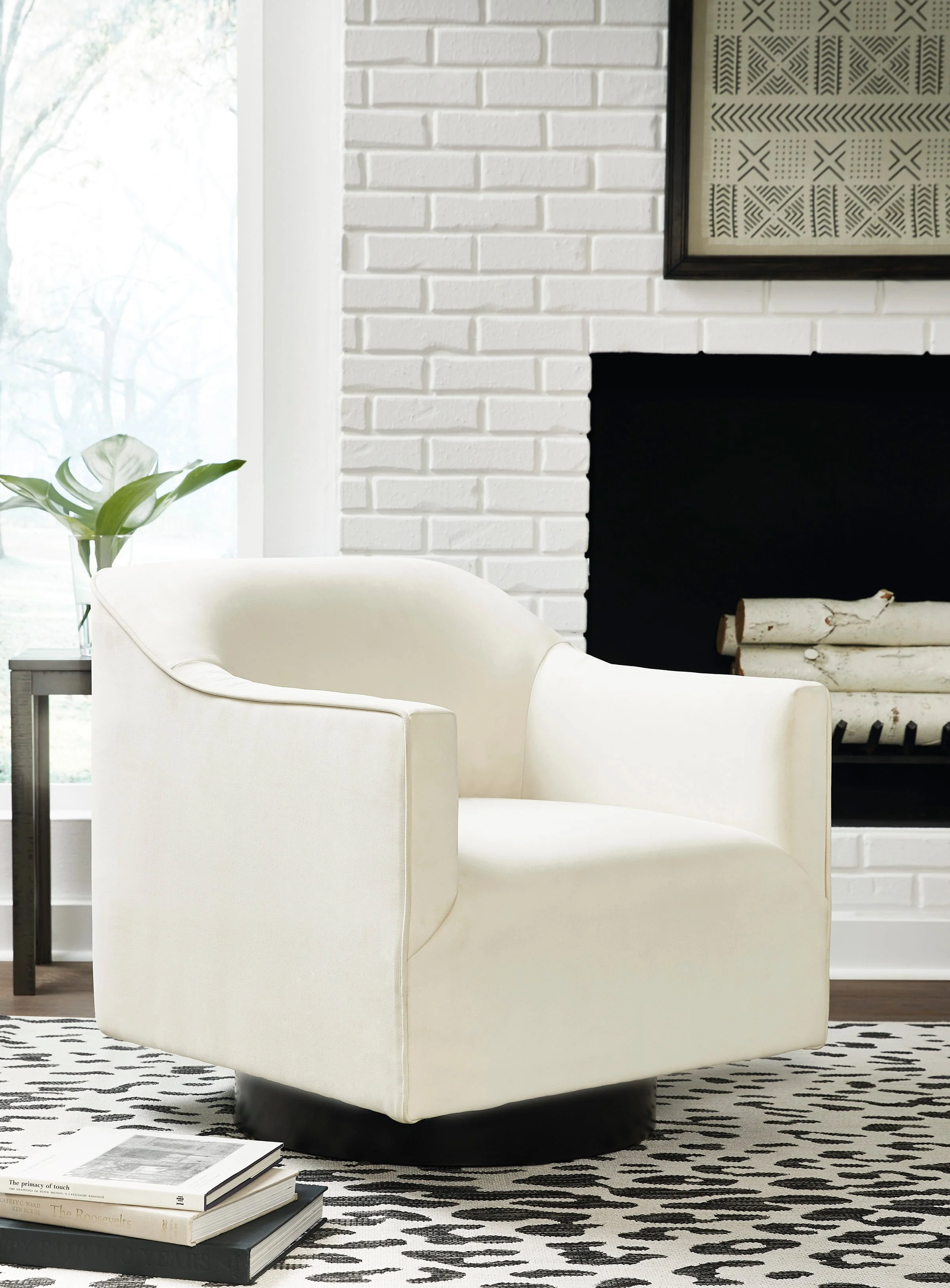 The Phantasm Faux Suede Swivel Accent Chair in Chalk White, made by Signature Design by Ashley,