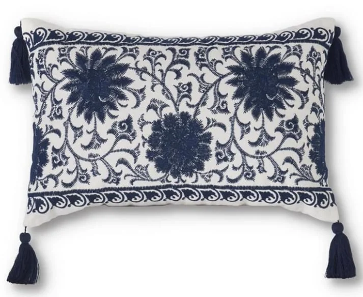 The Pillows and Accessory 18" Rectangular Blue and White Embroidered, made by K & K Interiors,